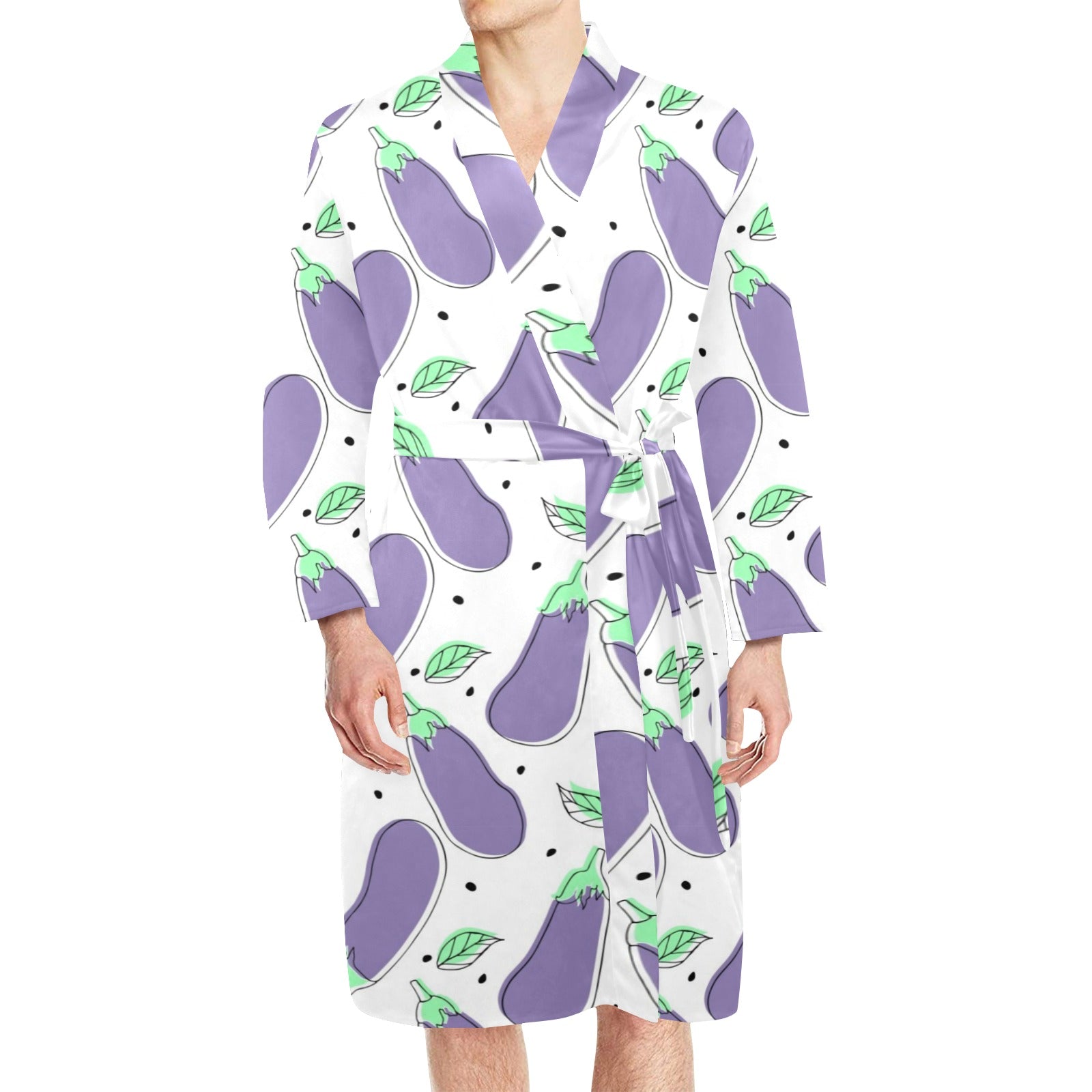 Eggplant Pattern Print Design 05 Men's Long Sleeve Belted Night Robe