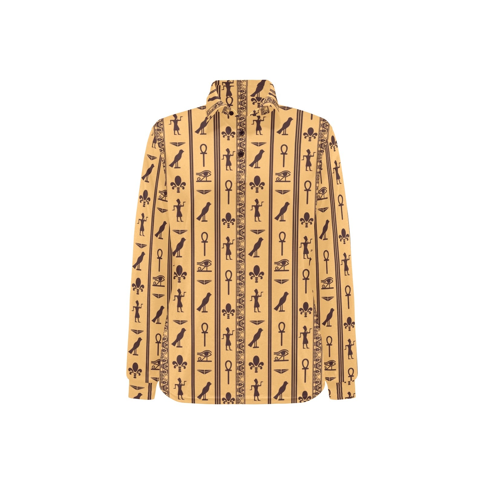 Egypt Hieroglyphics Pattern Print Design 02 Women's Long Sleeve Polo Shirt
