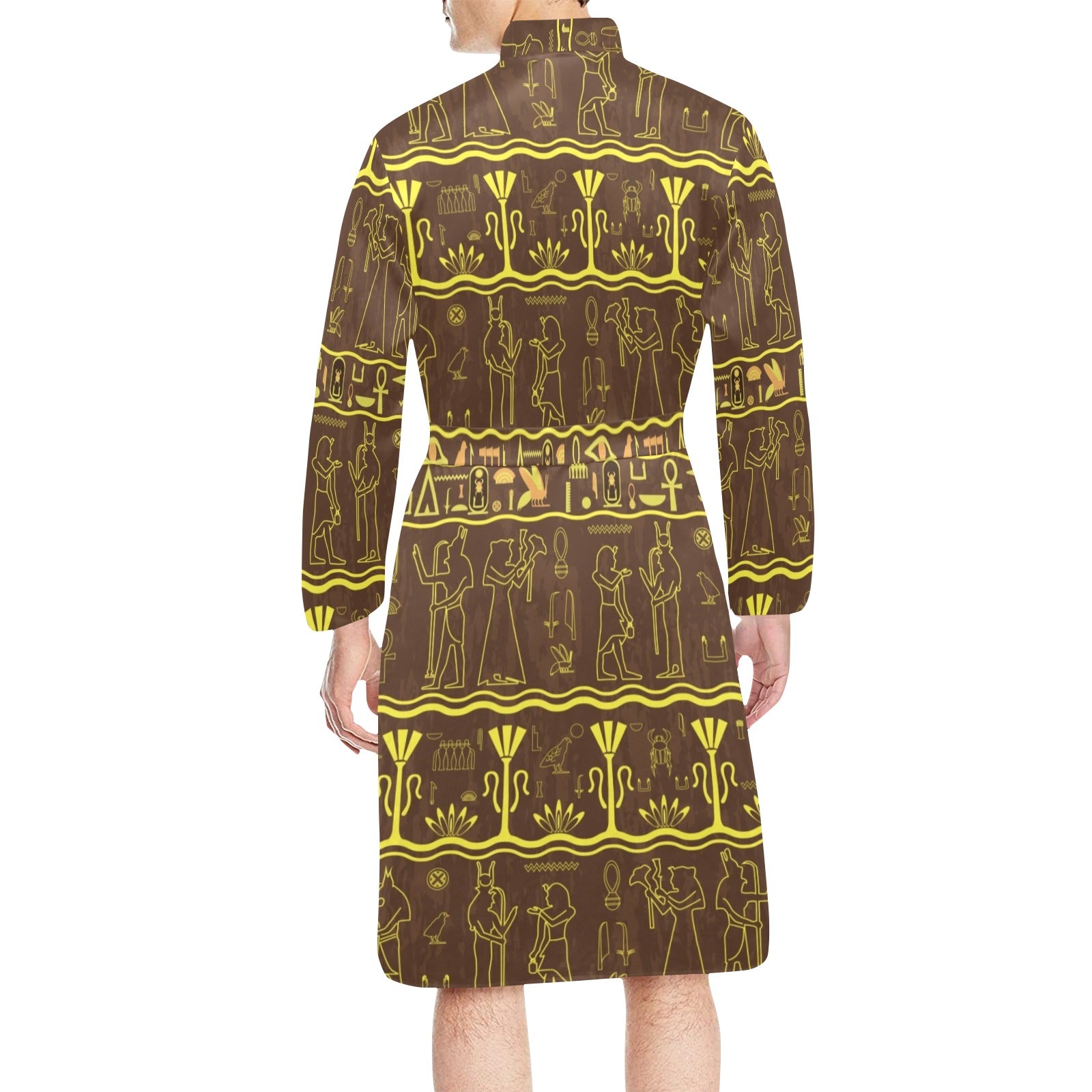 Egypt Hieroglyphics Pattern Print Design 03 Men's Long Sleeve Belted Night Robe