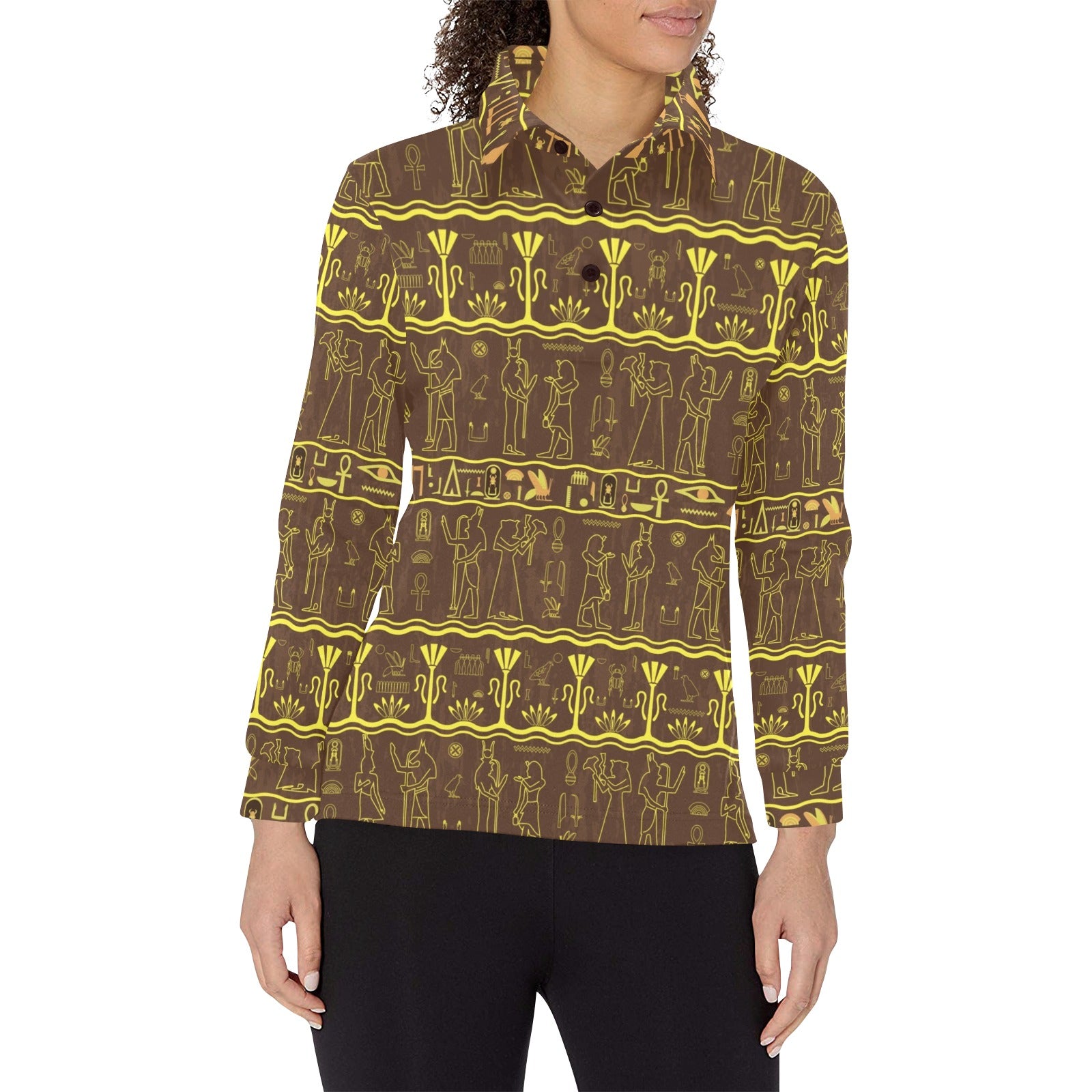 Egypt Hieroglyphics Pattern Print Design 03 Women's Long Sleeve Polo Shirt