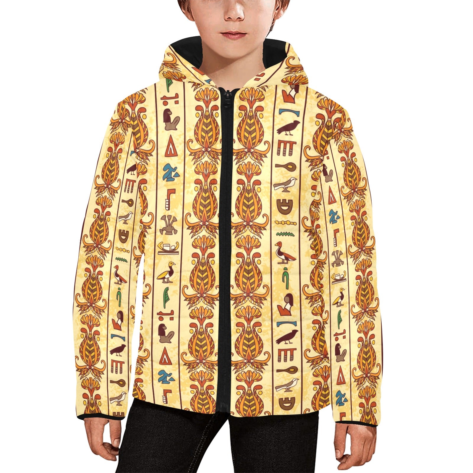 Egypt Hieroglyphics Pattern Print Design 04 Kids' Boys' Girls' Padded Hooded Jacket