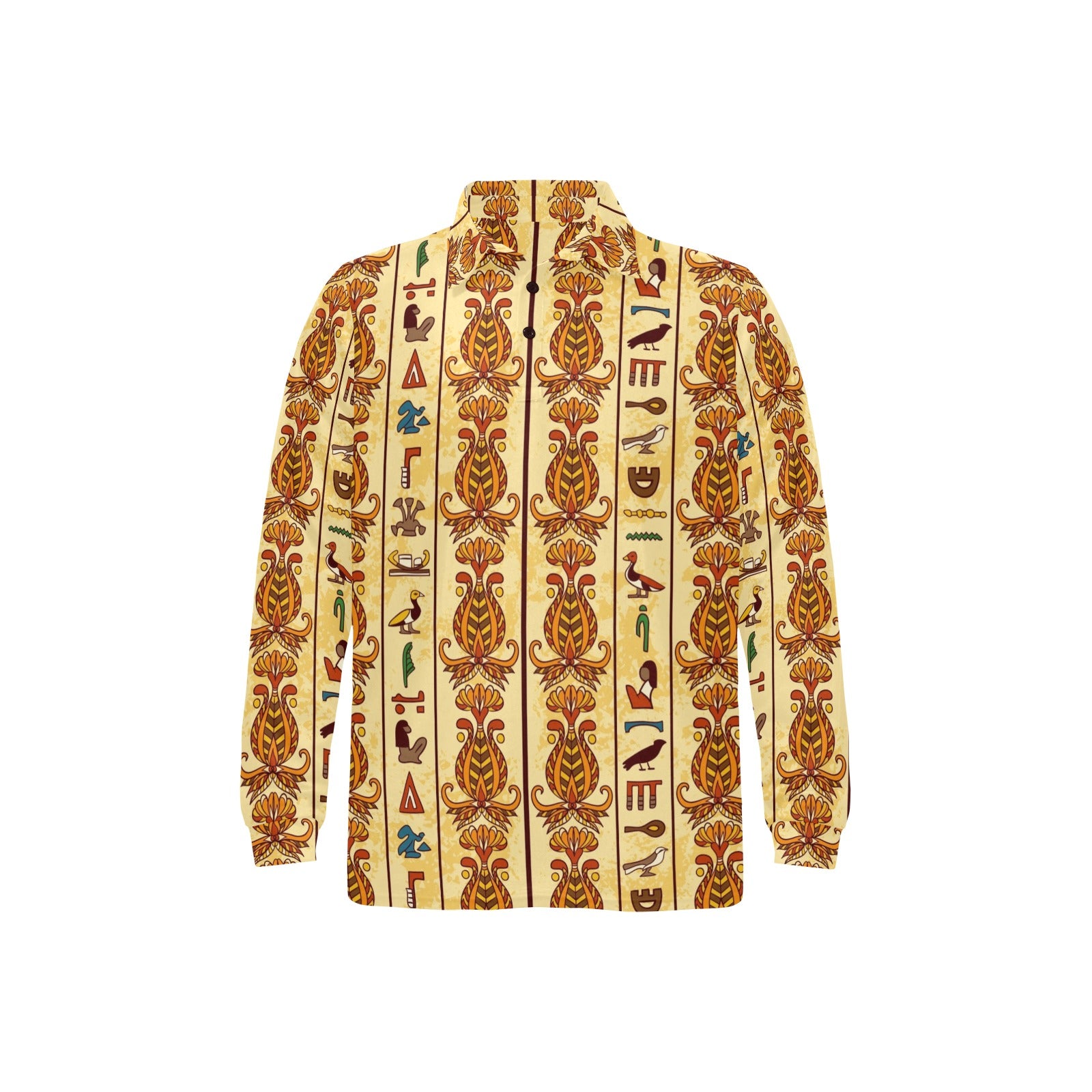 Egypt Hieroglyphics Pattern Print Design 04 Men's Long Sleeve Polo Shirt