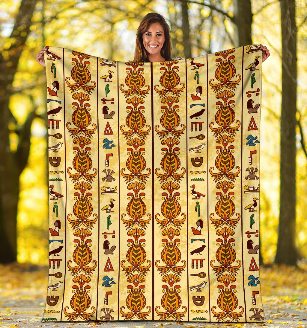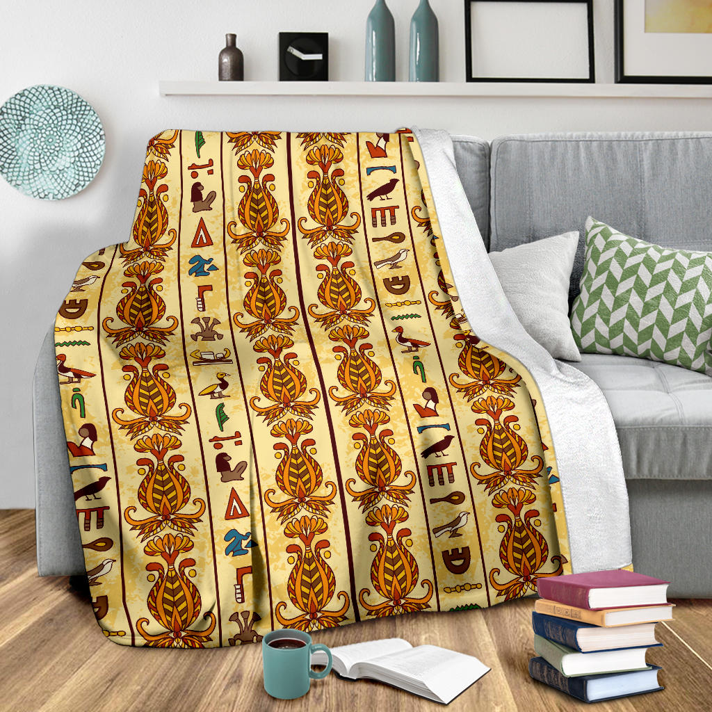 Egypt Hieroglyphics Pattern Print Design 04 Premium Blanket