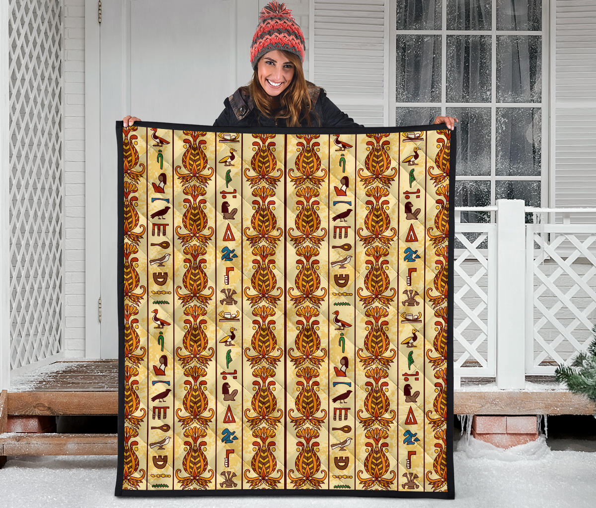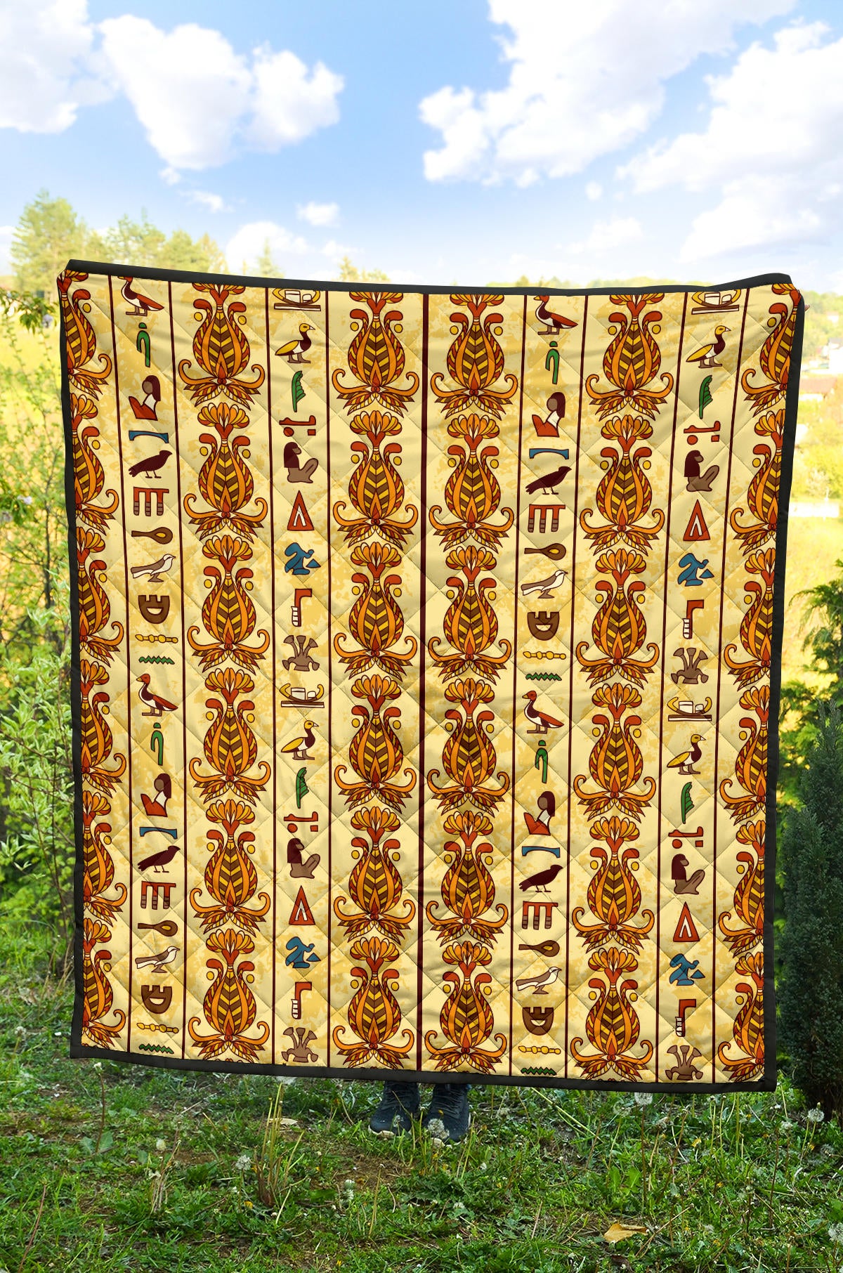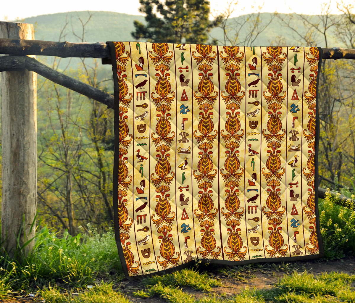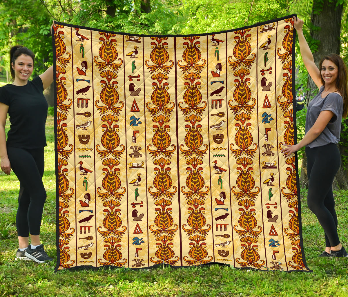 Egypt Hieroglyphics Pattern Print Design 04 Premium Quilt is a uniqued design and limited item. It made to order, hand printed, and sewn with love in our factory.