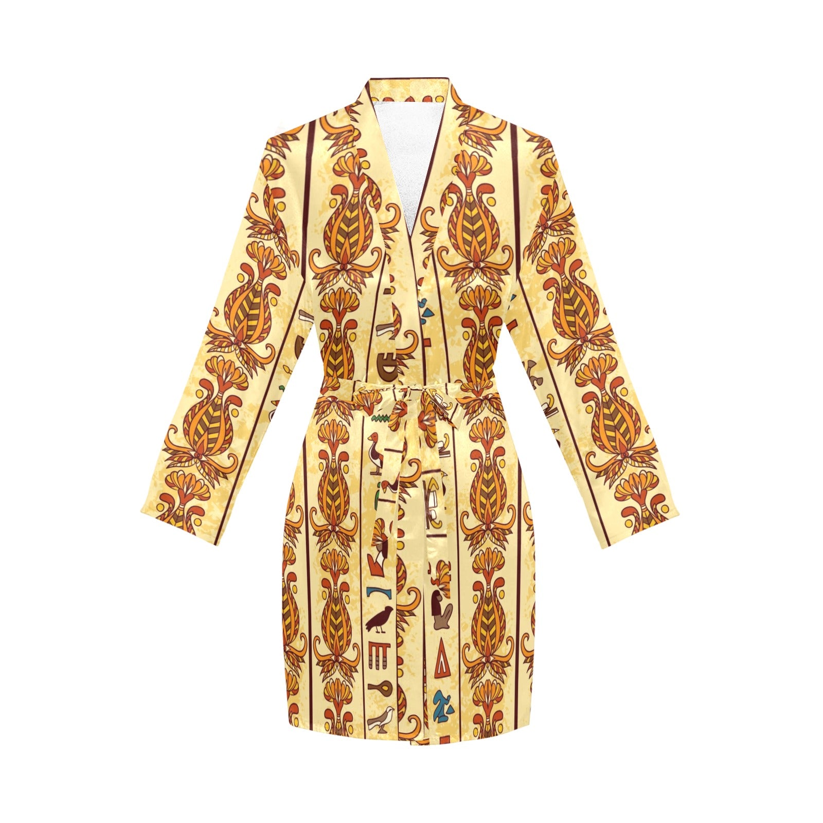 Egypt Hieroglyphics Pattern Print Design 04 Women's Long Sleeve Belted Night Robe