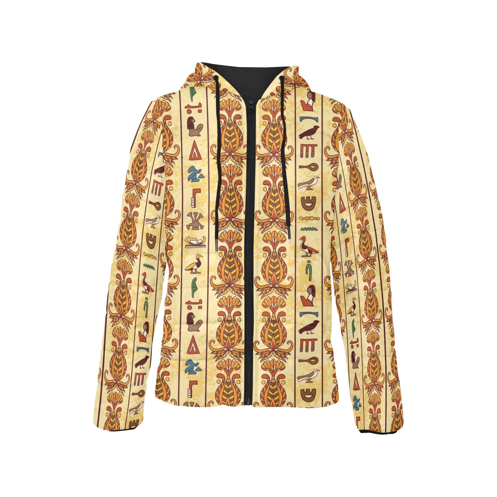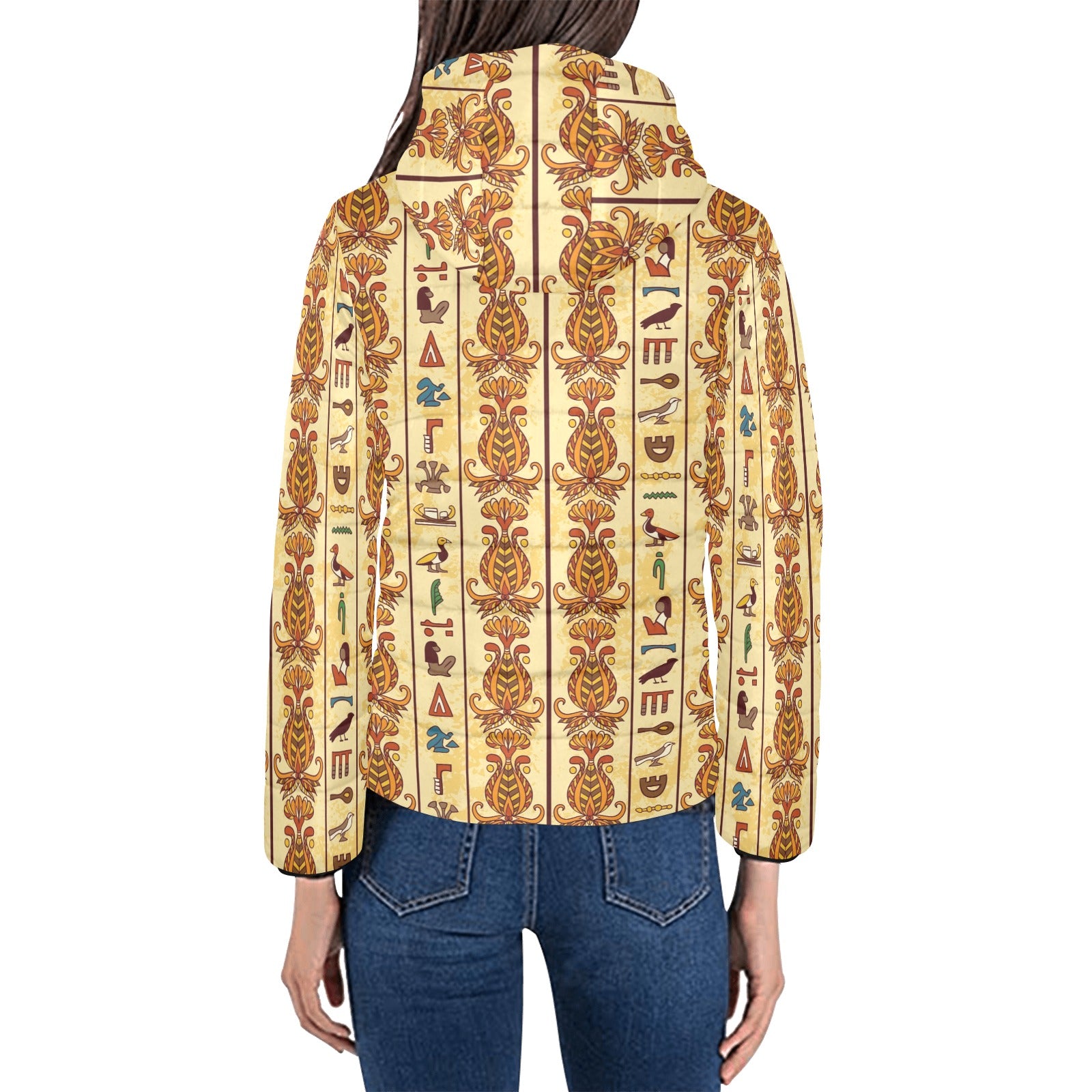 Egypt Hieroglyphics Pattern Print Design 04 Women's Padded Hooded Jacket