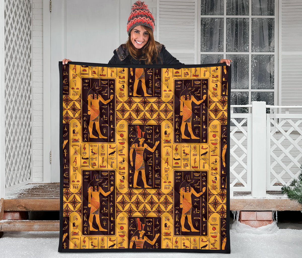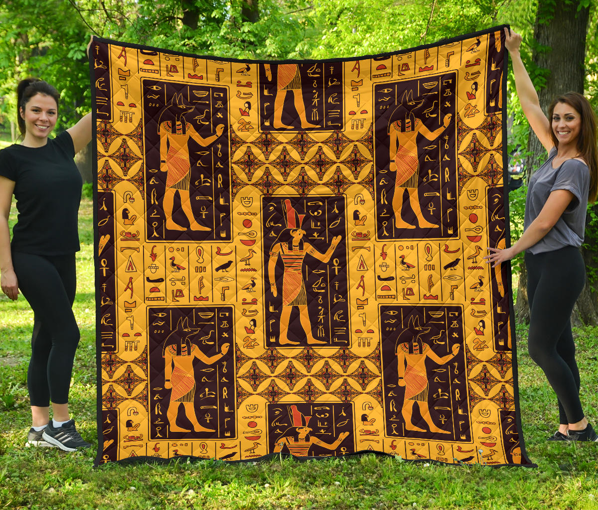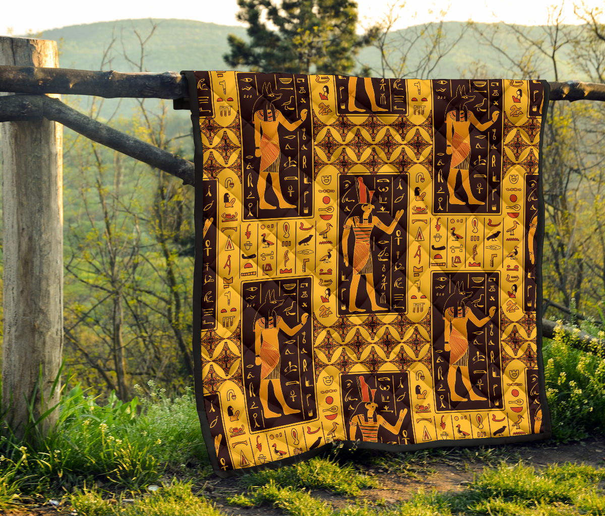 Egypt Hieroglyphics Pattern Print Design 05 Premium Quilt is a uniqued design and limited item. It made to order, hand printed, and sewn with love in our factory.