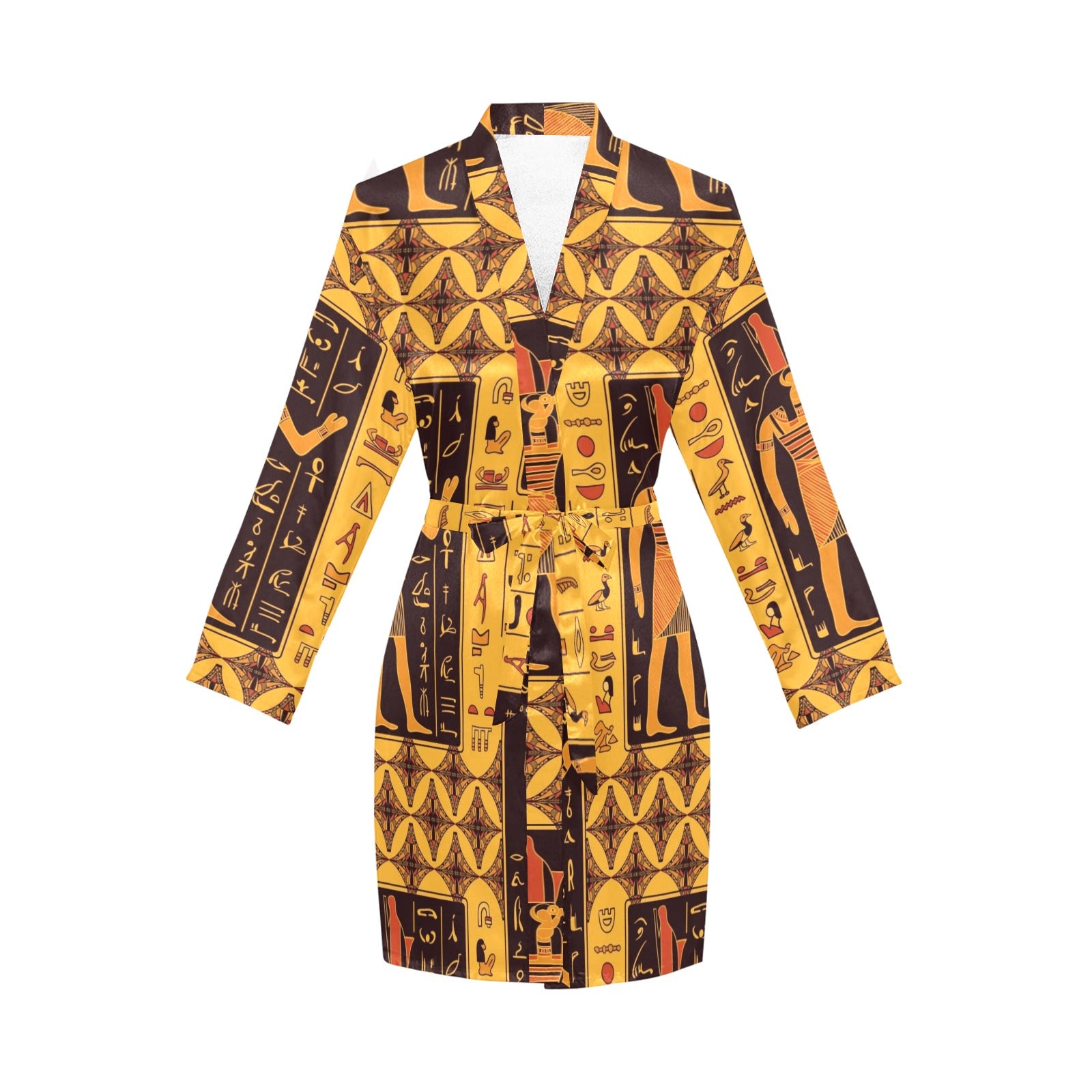 Egypt Hieroglyphics Pattern Print Design 05 Women's Long Sleeve Belted Night Robe