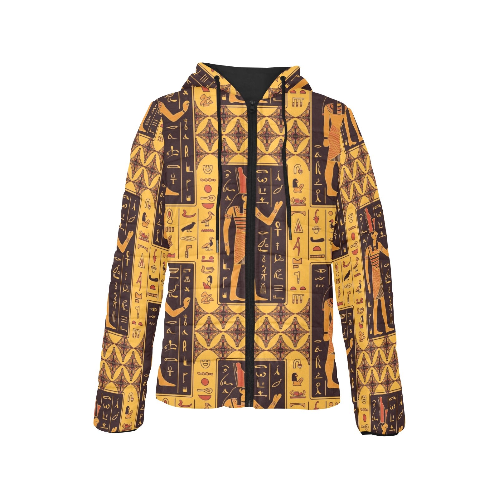 Egypt Hieroglyphics Pattern Print Design 05 Women's Padded Hooded Jacket