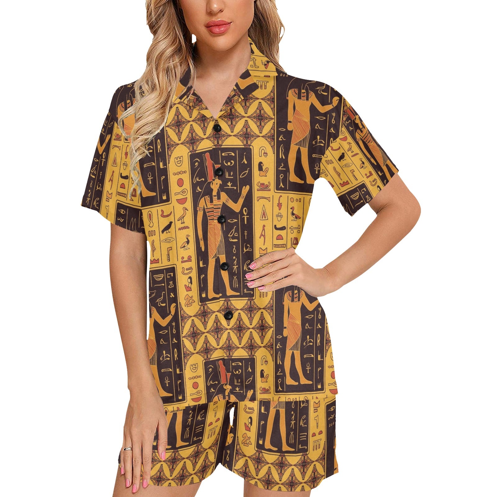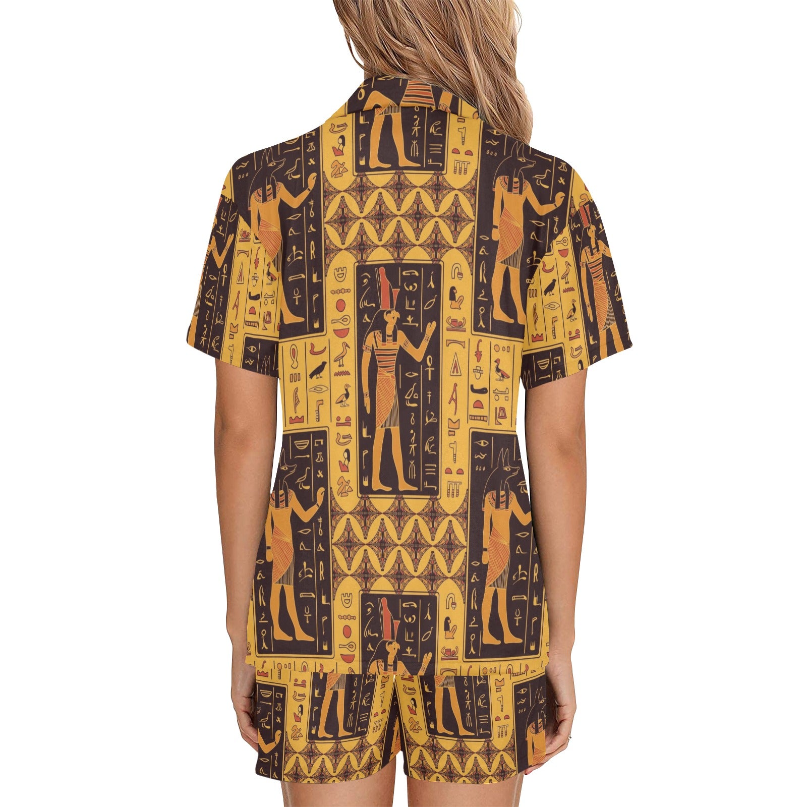 Egypt Hieroglyphics Pattern Print Design 05 Women's V-Neck Short Pajama Set
