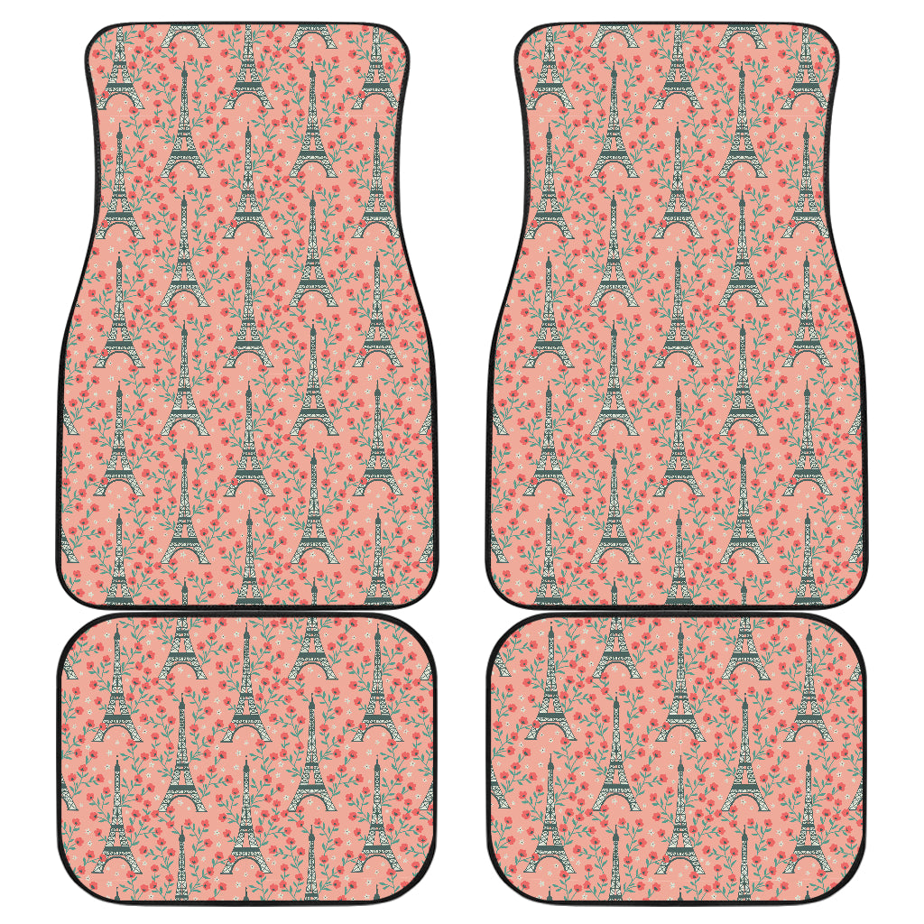 Eiffel Tower Flower Background Pattern Print Design 03 Front and Back Car Mats