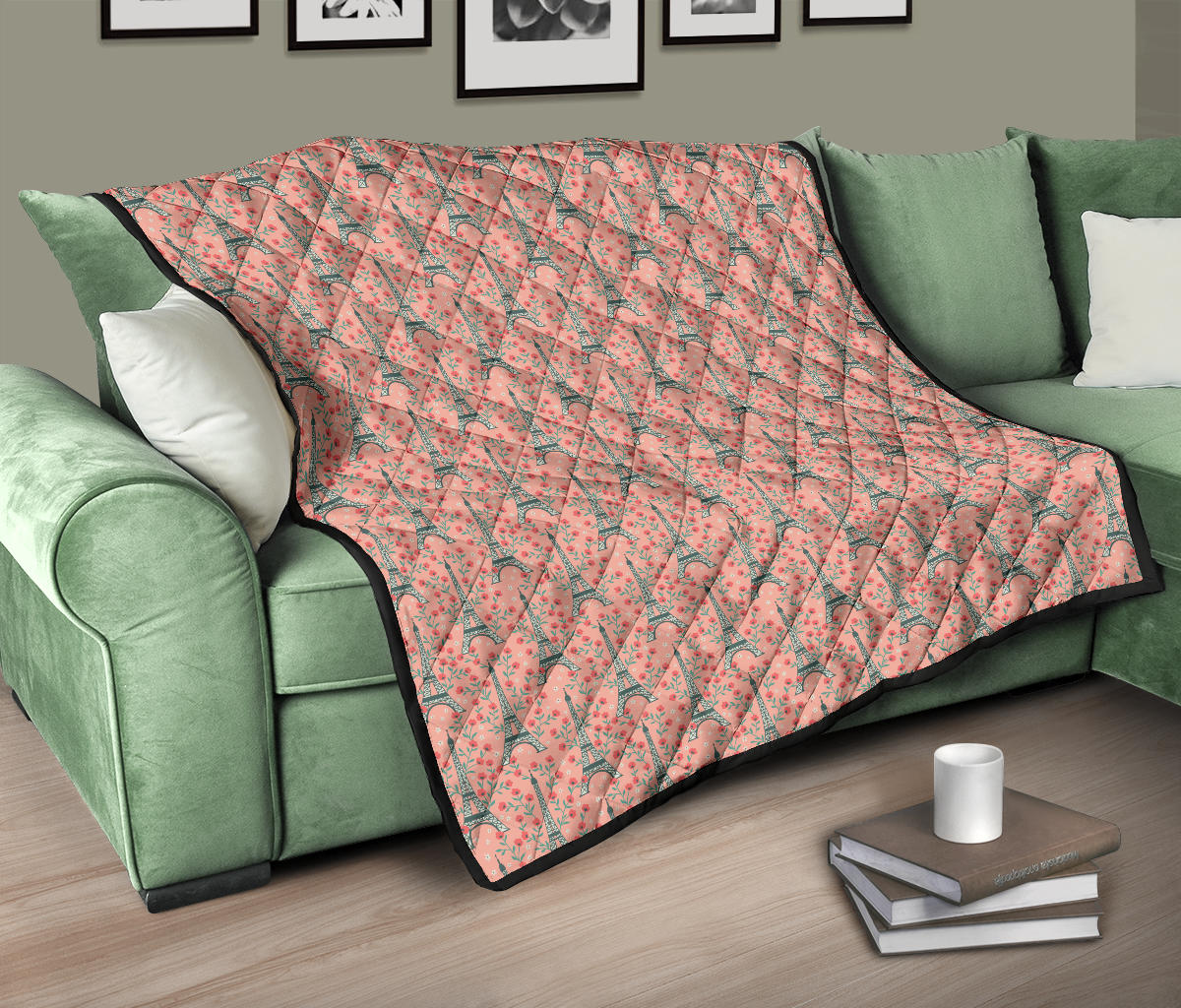 Eiffel Tower Flower Background Pattern Print Design 03 Premium Quilt is a uniqued design and limited item. It made to order, hand printed, and sewn with love in our factory.