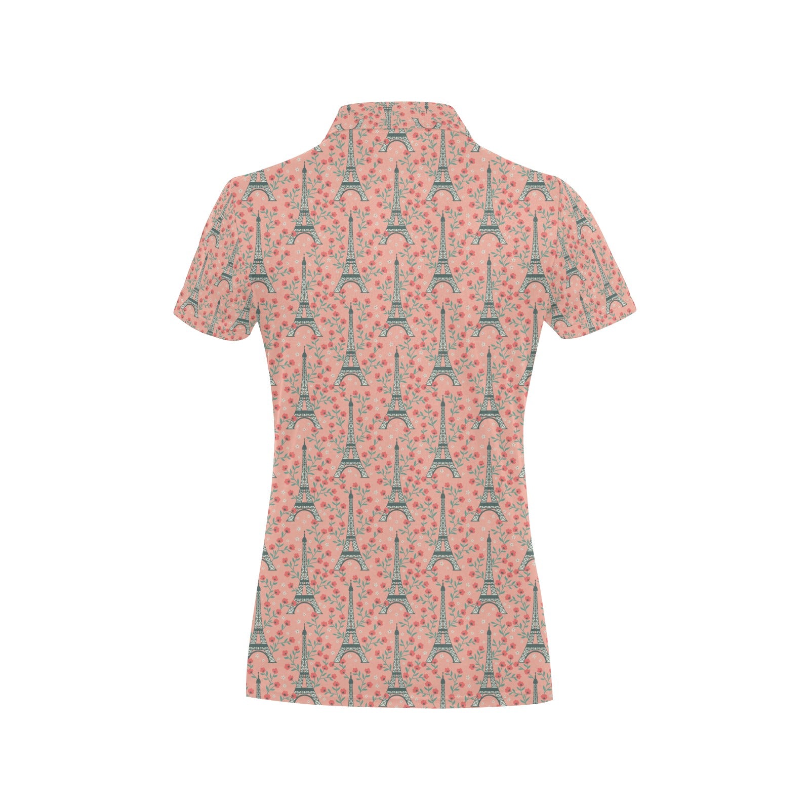 Eiffel Tower Flower Pattern Design 03 Women's All Over Print Polo Shirt