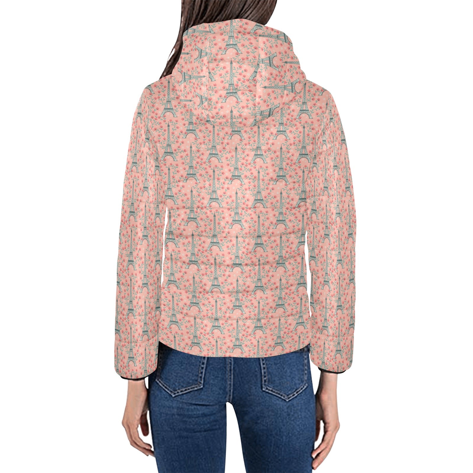 Eiffel Tower Flower Pattern Design 03 Women's Padded Hooded Jacket