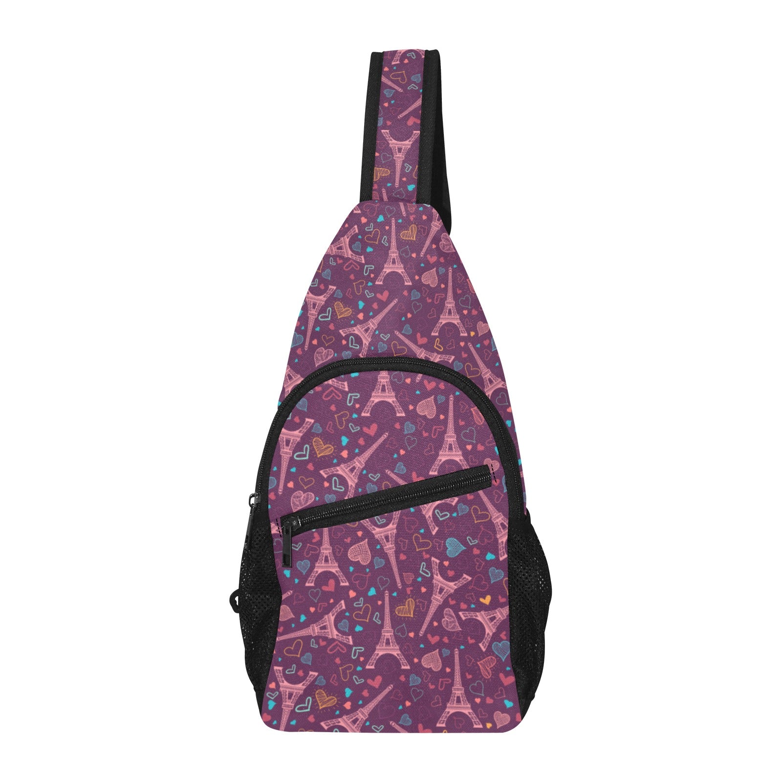 Eiffel Tower Heart Pattern Print Design 04 All Over Print Chest Bag
