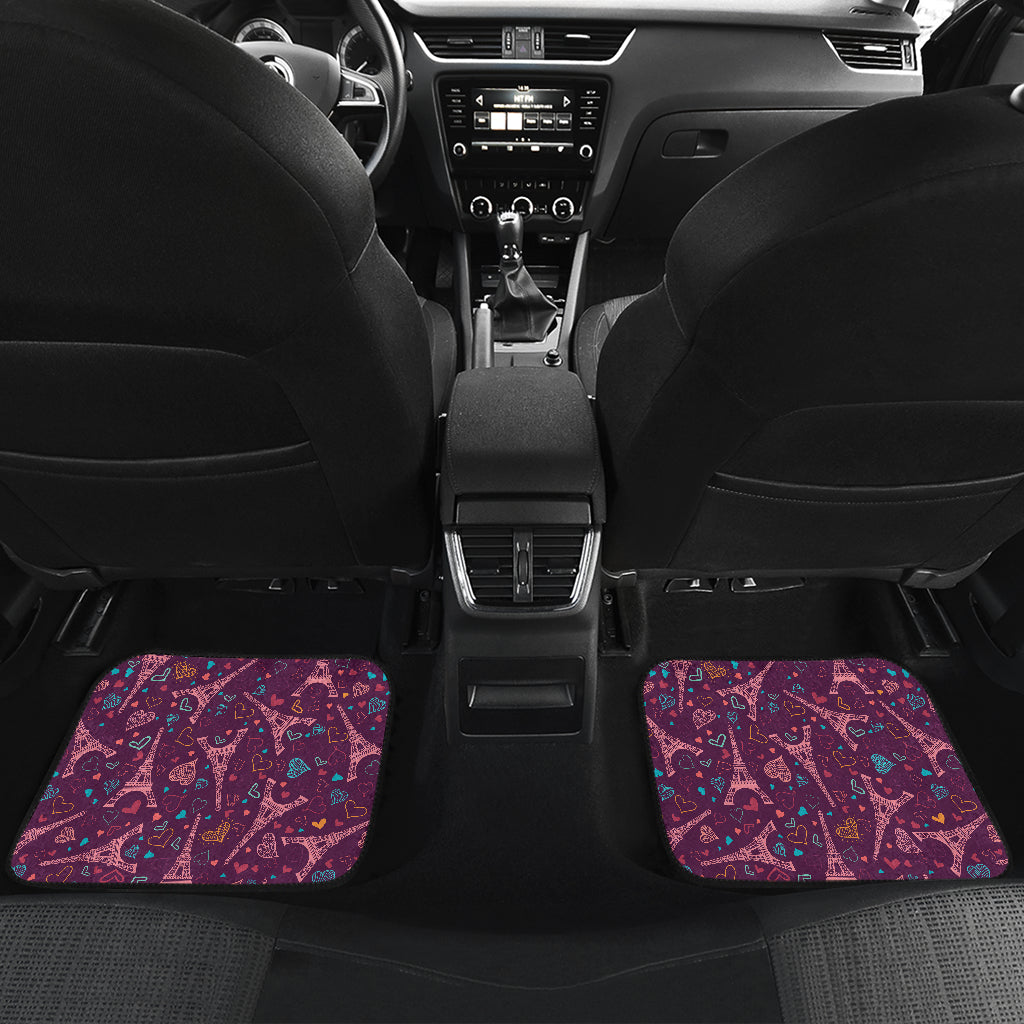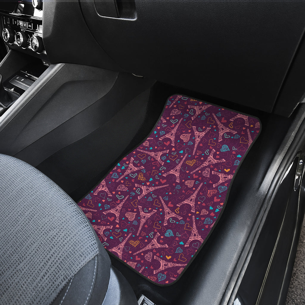 Eiffel Tower Heart Pattern Print Design 04 Front and Back Car Mats