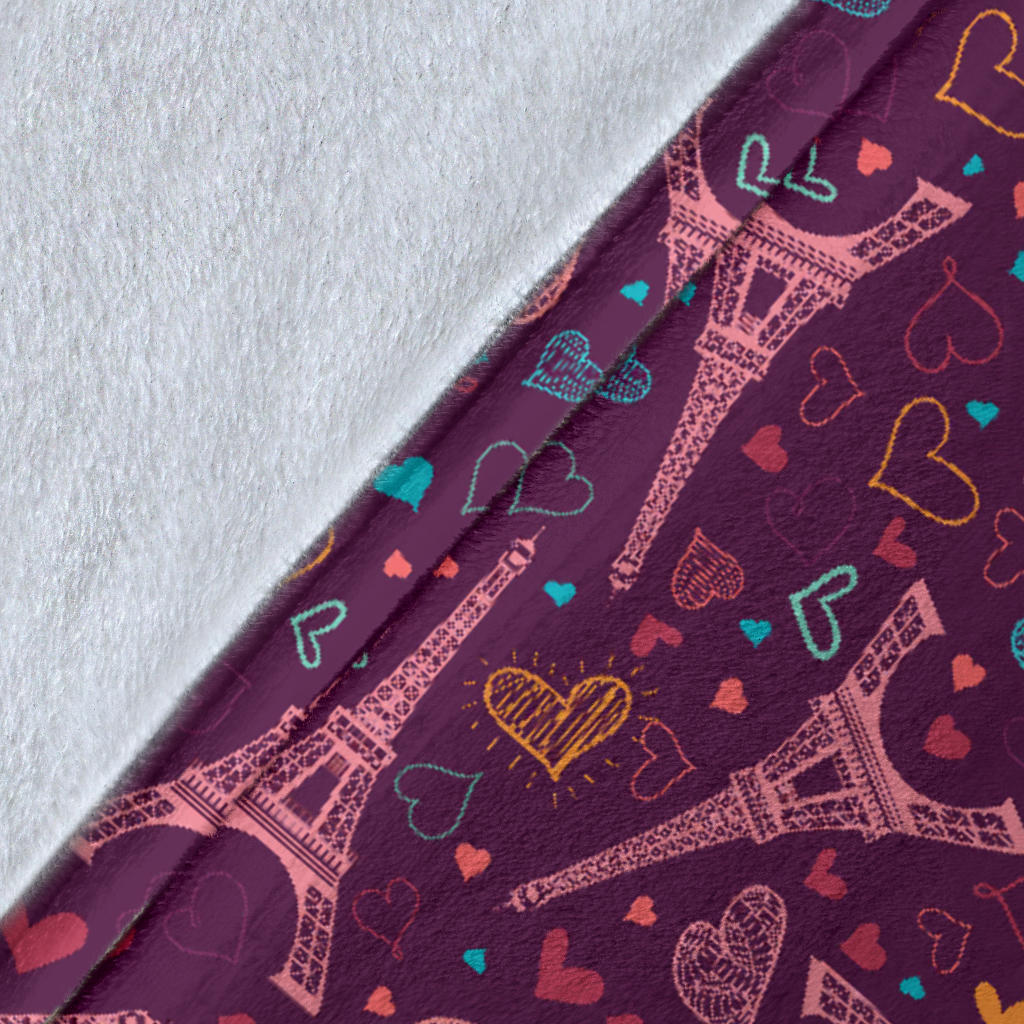 Eiffel Tower Heart Pattern Print Design 04 Premium Blanket