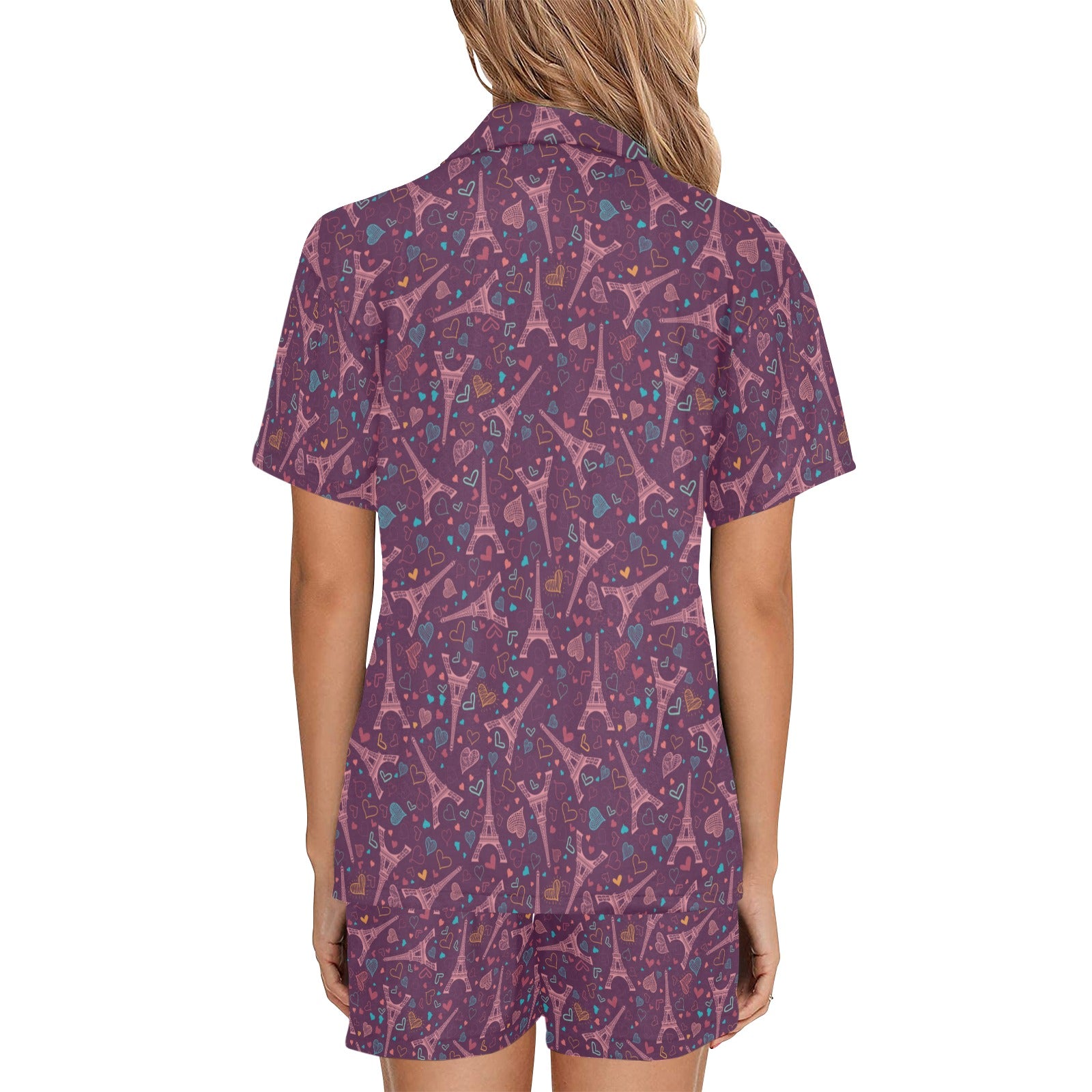 Eiffel Tower Heart Pattern Print Design 04 Women's V-Neck Short Pajama Set