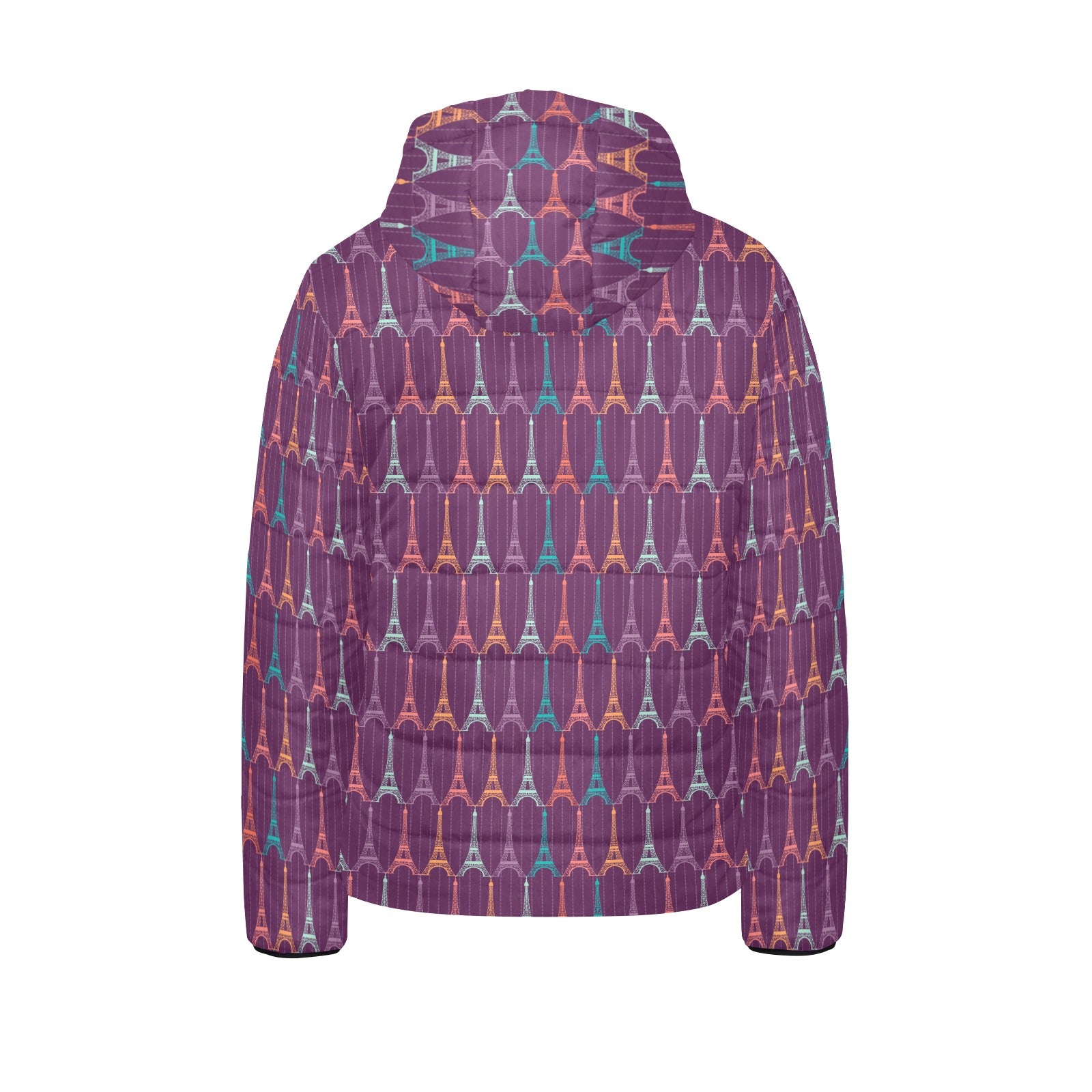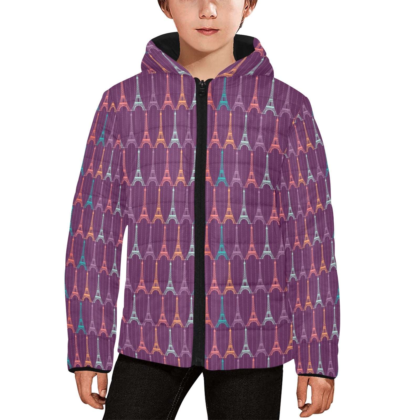 Eiffel Tower Pattern Print Design 05 Kids' Boys' Girls' Padded Hooded Jacket