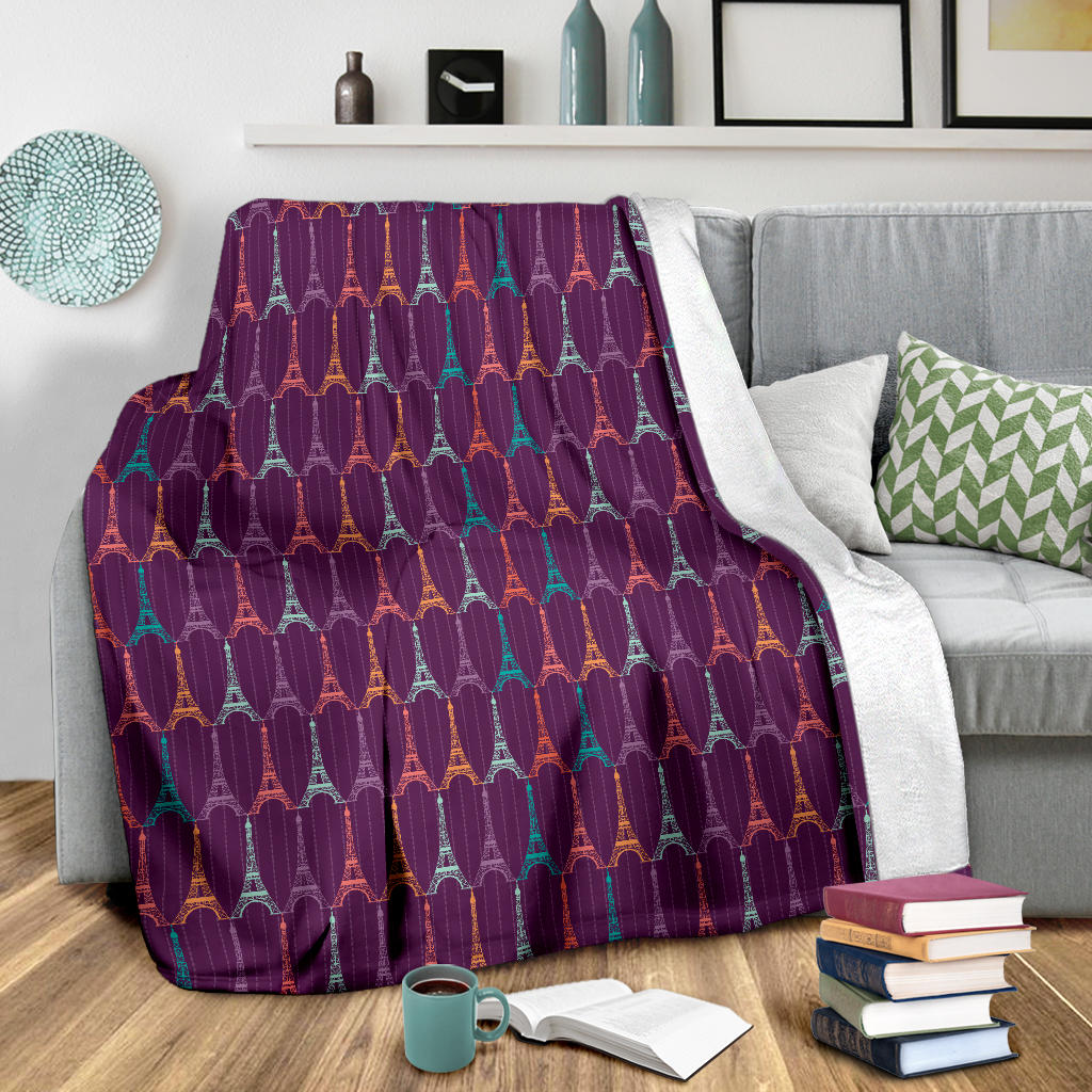 Eiffel Tower Pattern Print Design 05 Premium Blanket