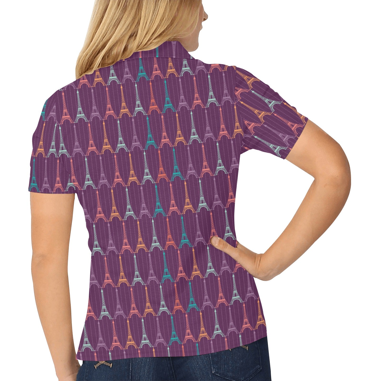 Eiffel Tower Pattern Print Design 05 Women's All Over Print Polo Shirt