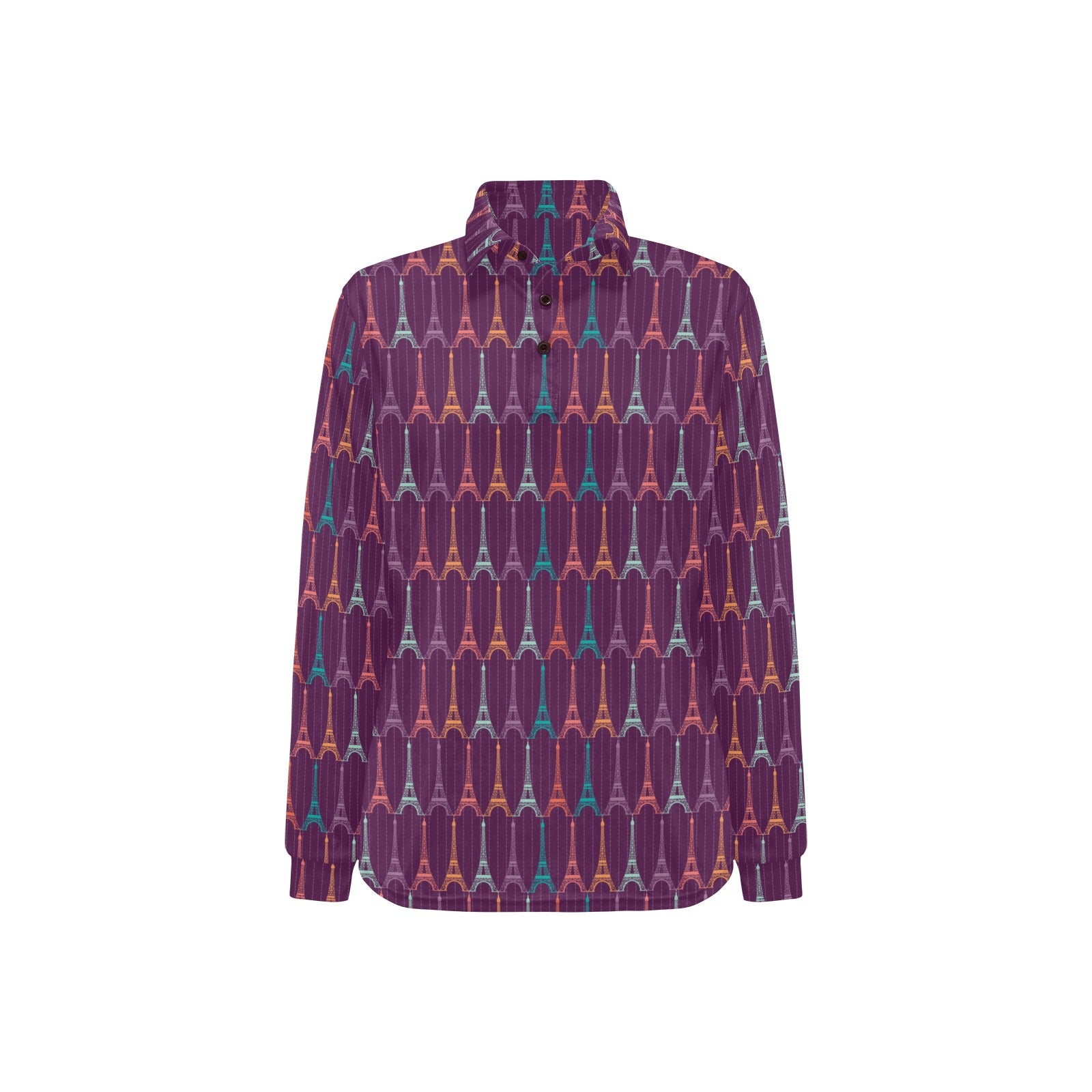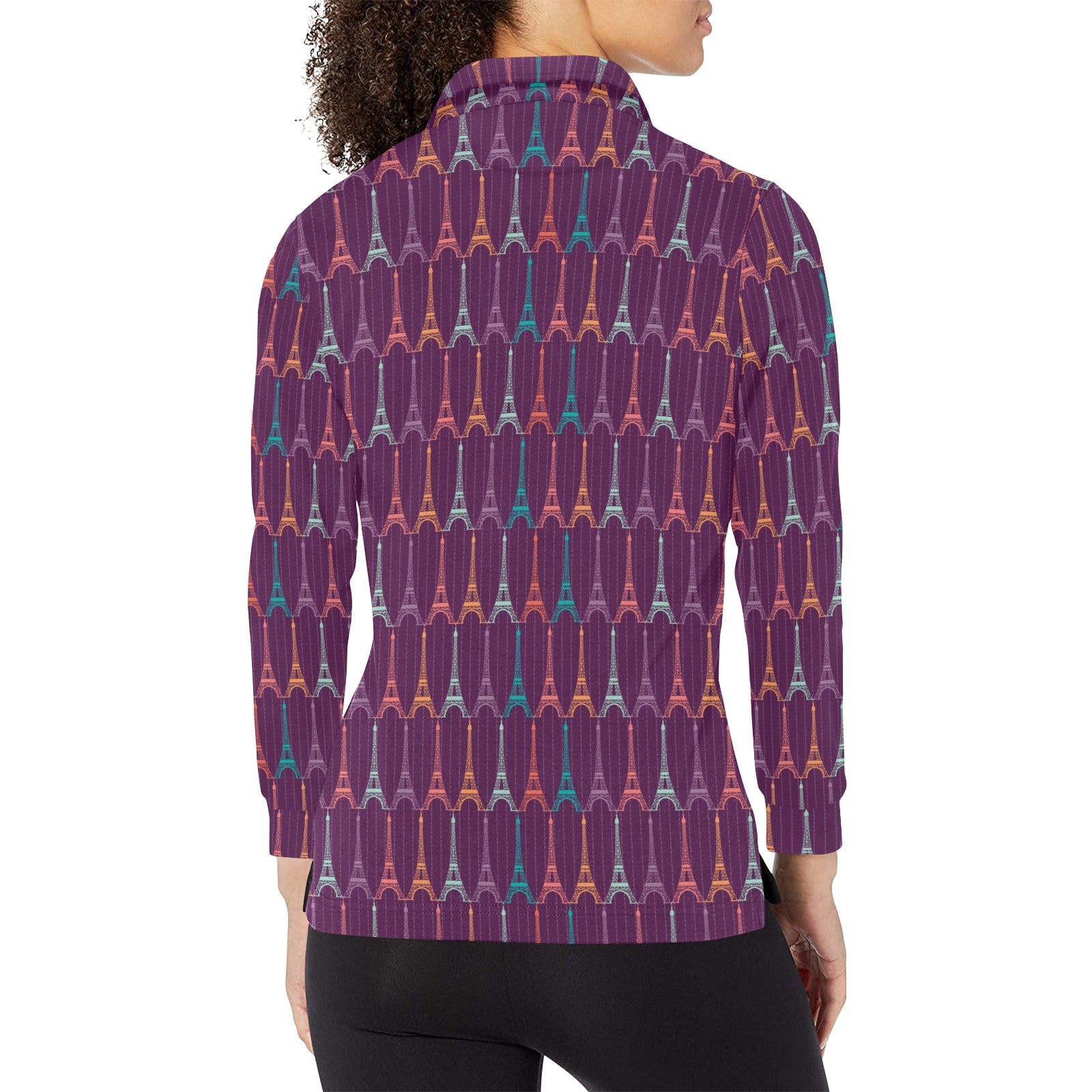 Eiffel Tower Pattern Print Design 05 Women's Long Sleeve Polo Shirt