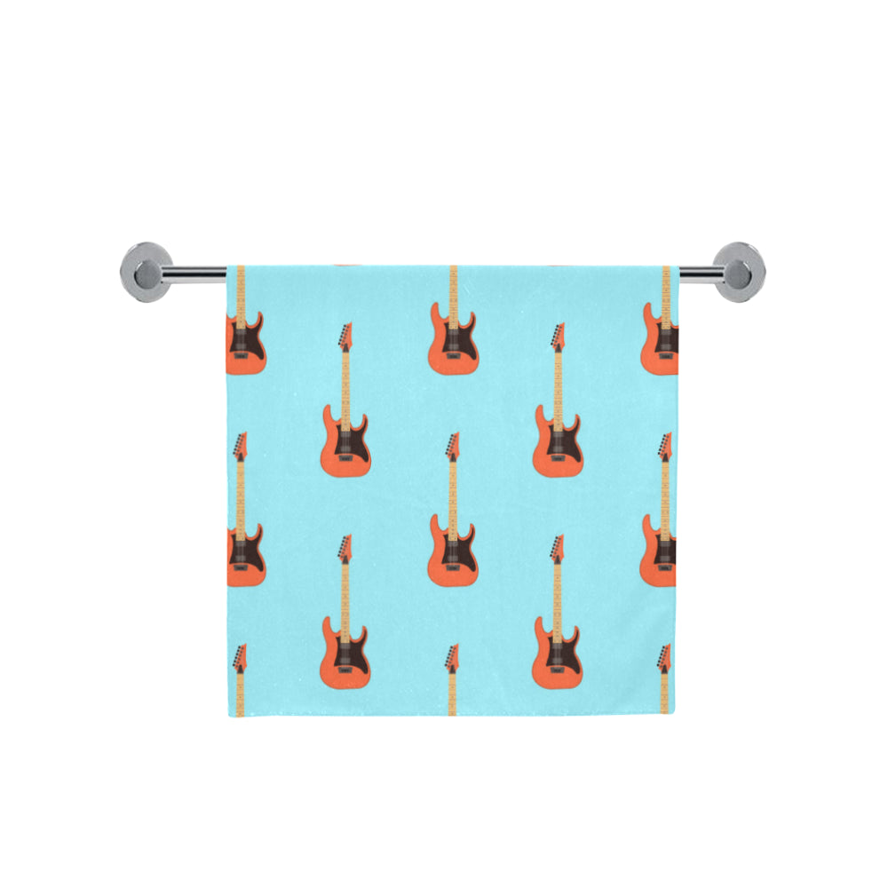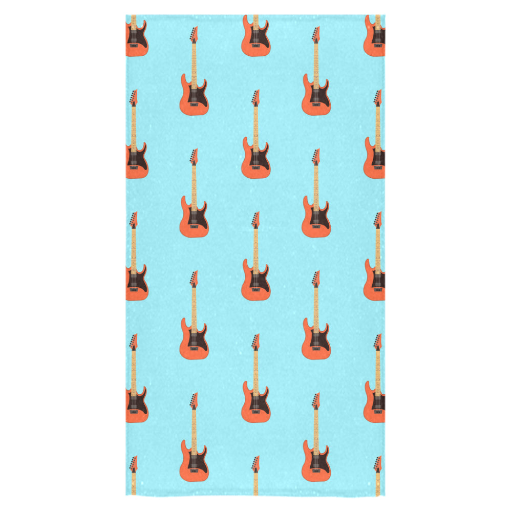 electric guitar pattern light blue background Bath Towel 30"x56" is a uniqued design and limited item. It made to order, hand printed, and sewn with love in our factory.