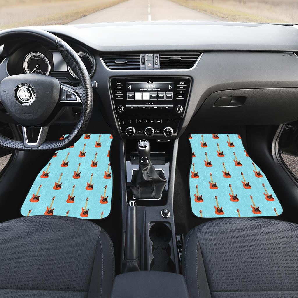 Electric Guitar Pattern Light Blue Background Front Car Mats