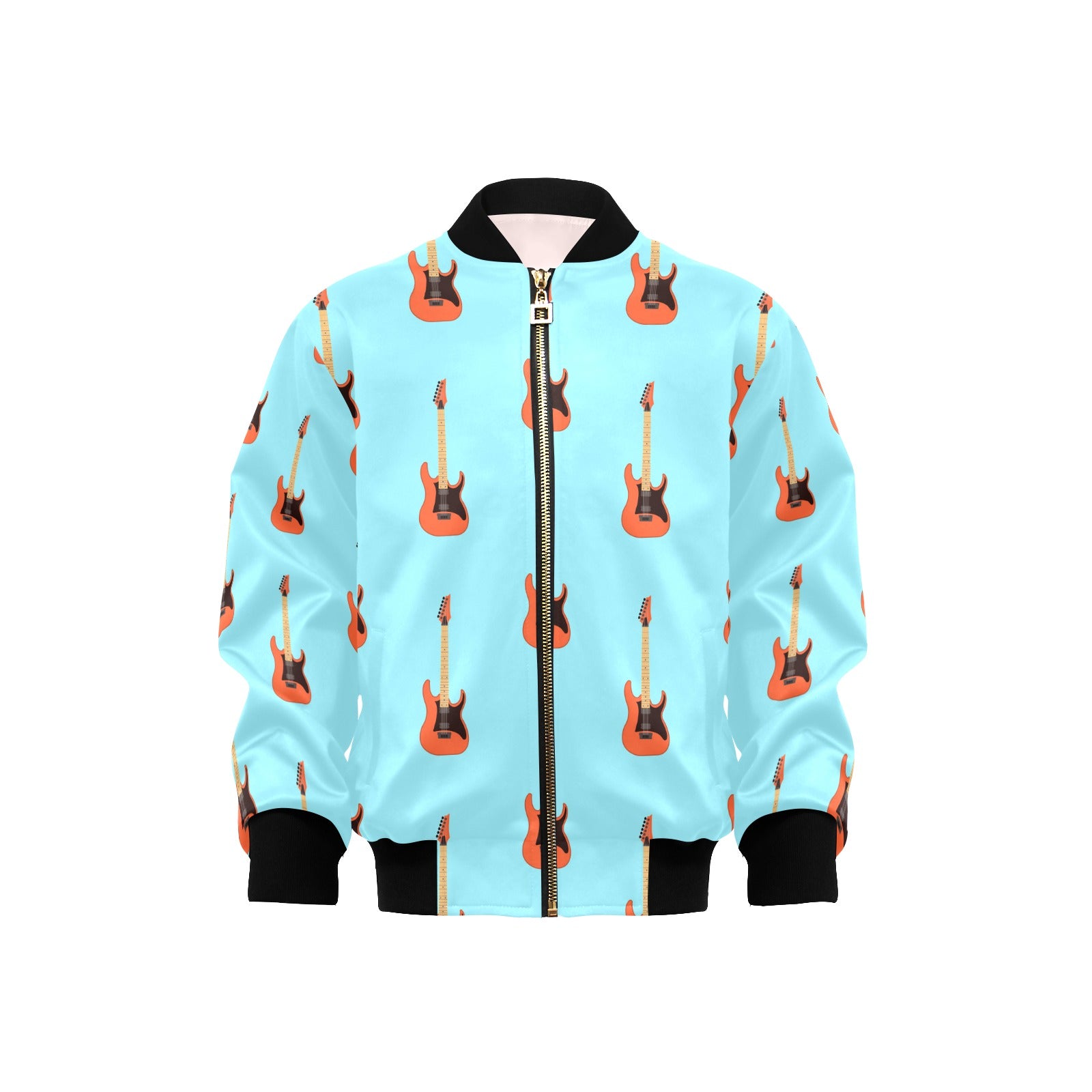 electric guitar pattern light blue background Kids' Boys' Girls' Bomber Jacket