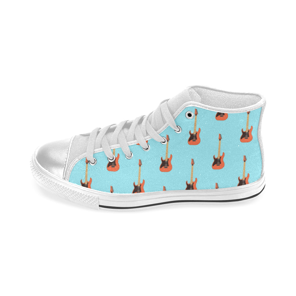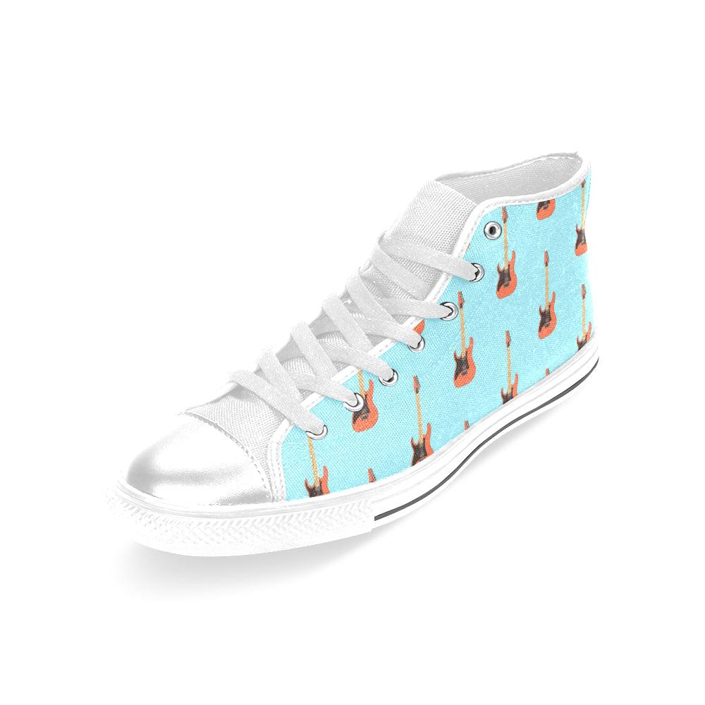 electric guitar pattern light blue background Women's High Top Canvas Shoes White
