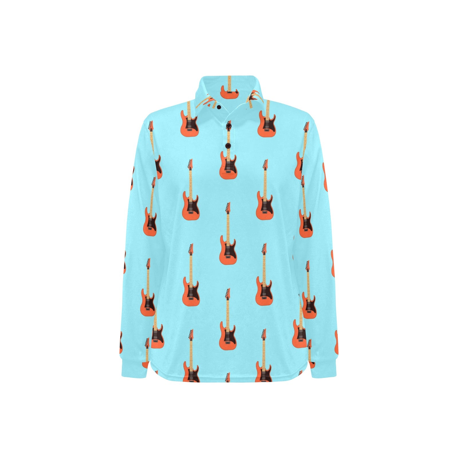 electric guitar pattern light blue background Women's Long Sleeve Polo Shirt