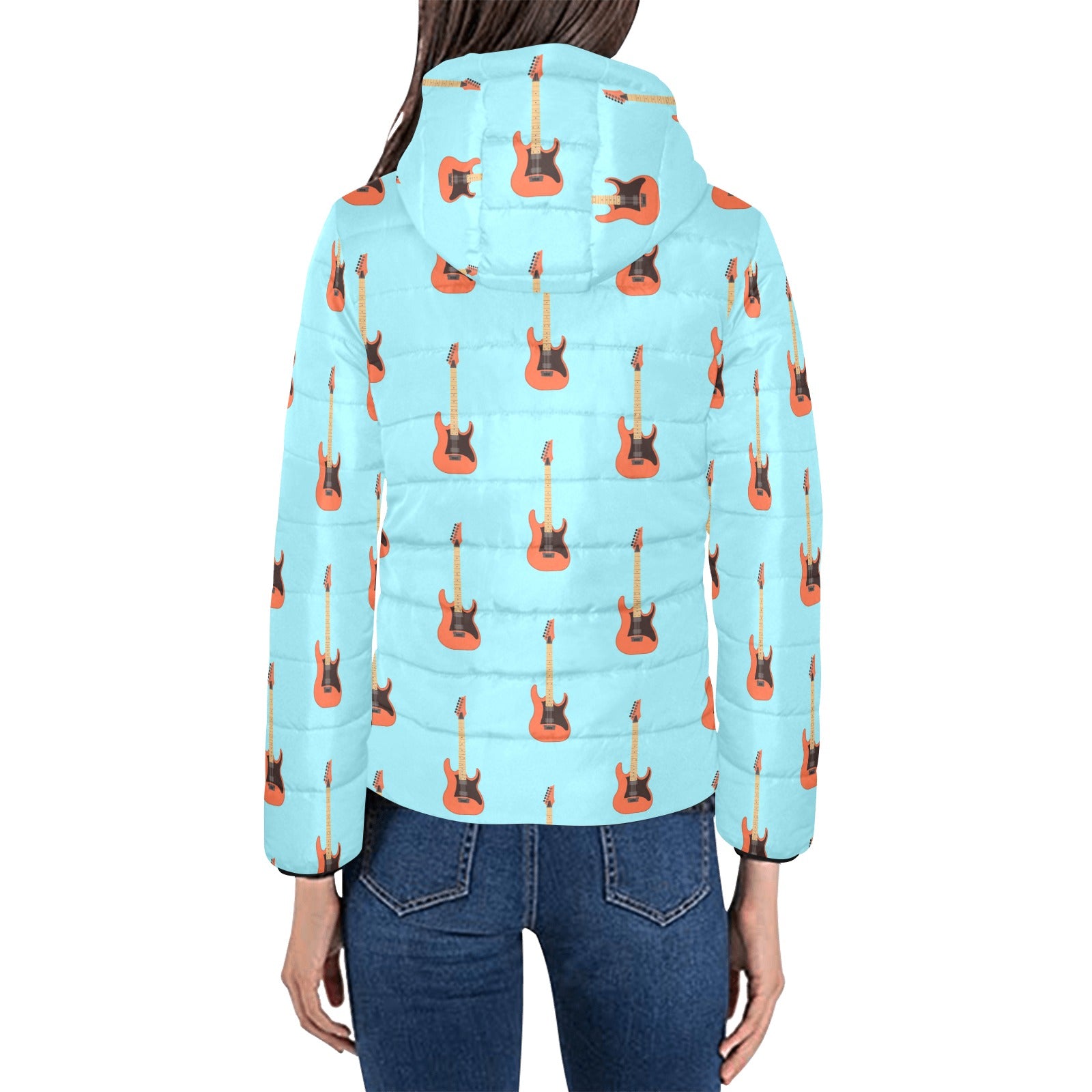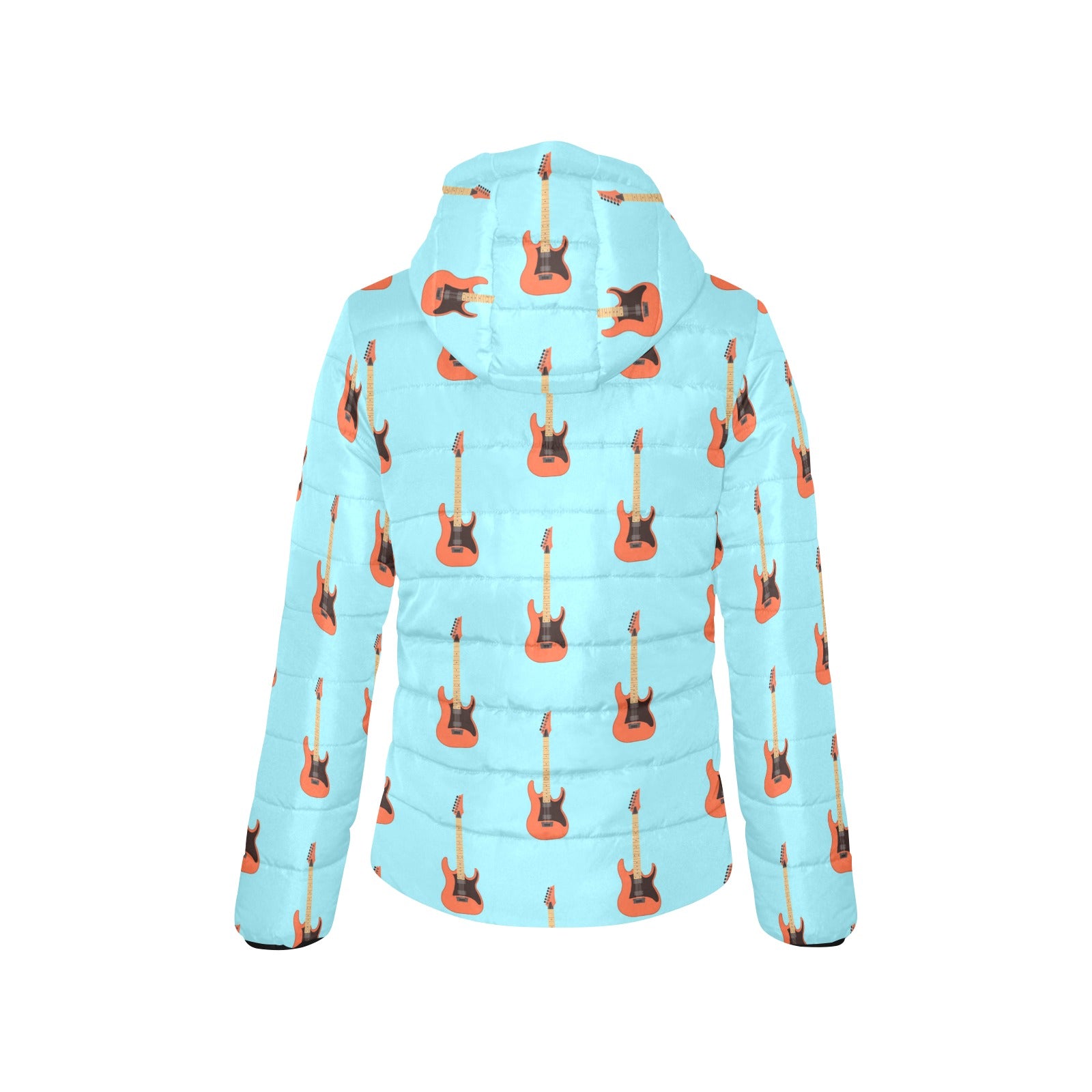 electric guitar pattern light blue background Women's Padded Hooded Jacket