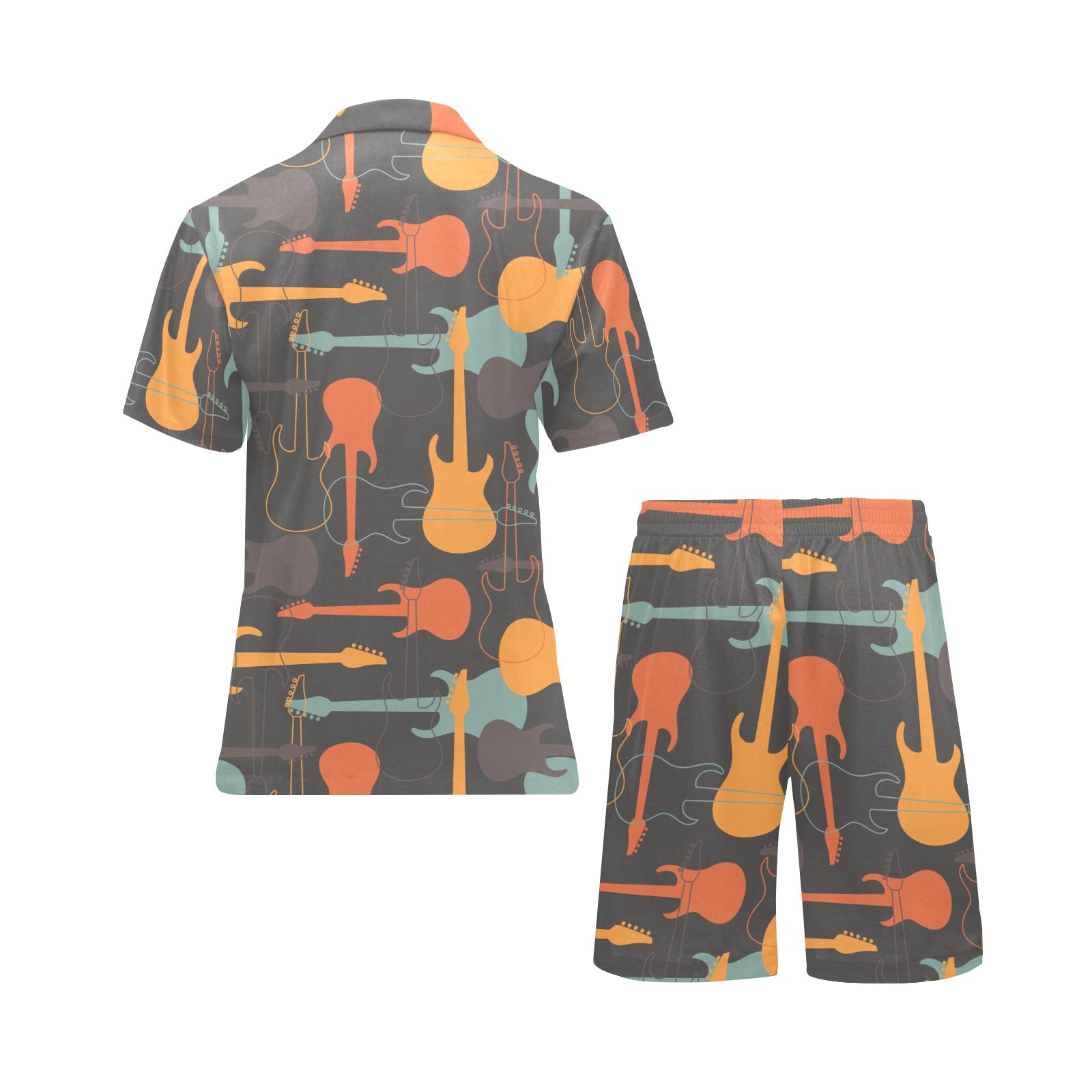electric guitars pattern Men's V-Neck Short Pajama Set