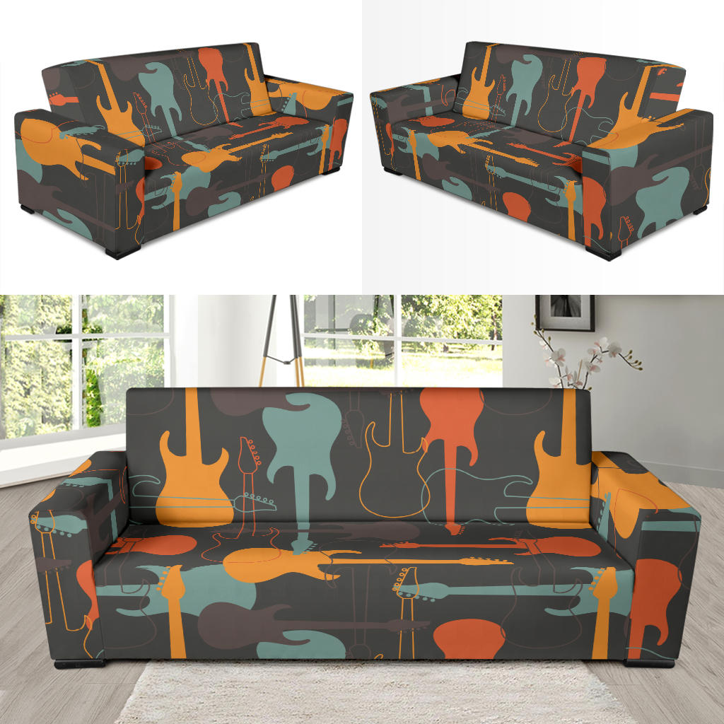 electric guitars pattern Sofa Slipcover is a uniqued design and limited item. It made to order, hand printed, and sewn with love in our factory.