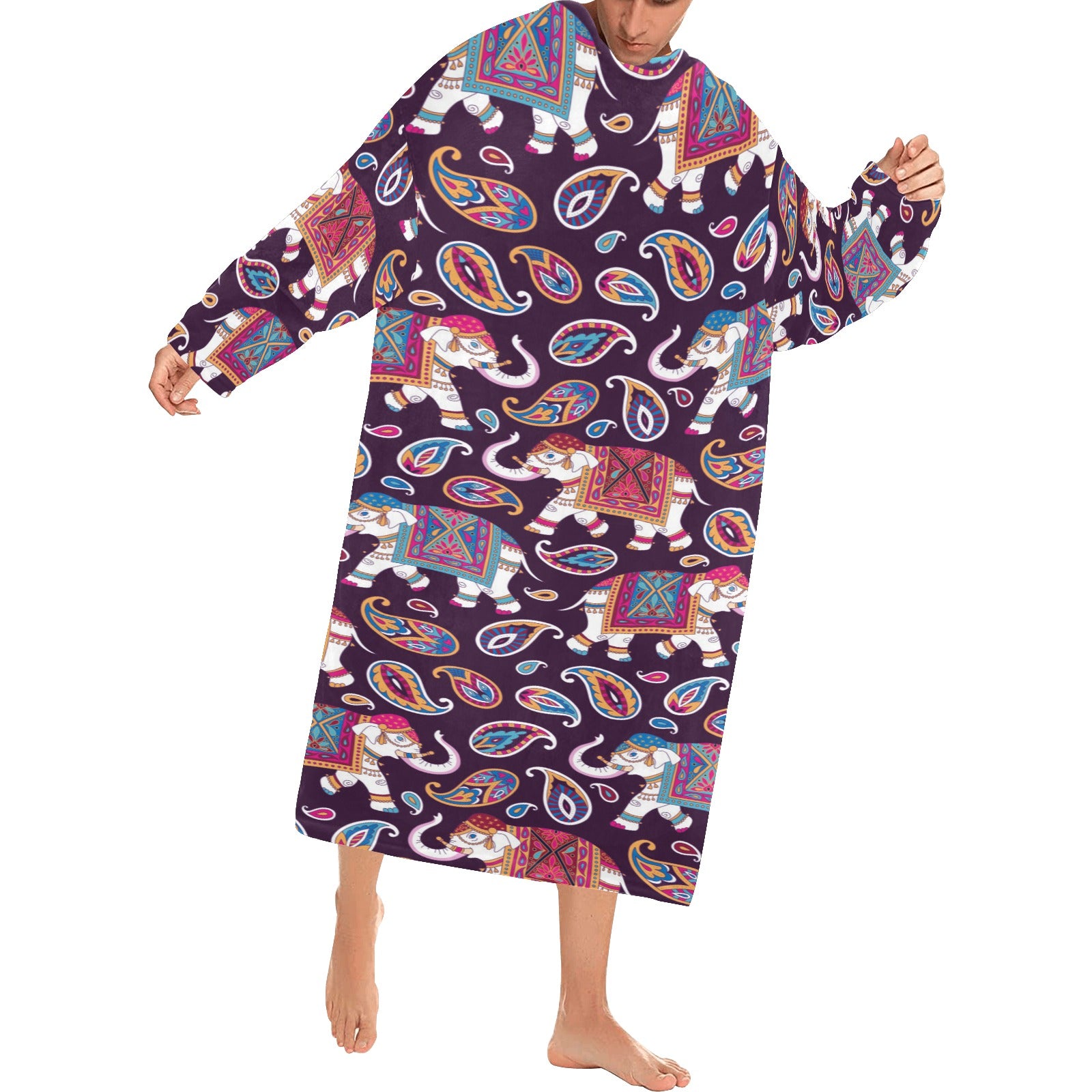 Elephant indian style ornament pattern Blanket Robe with Sleeves