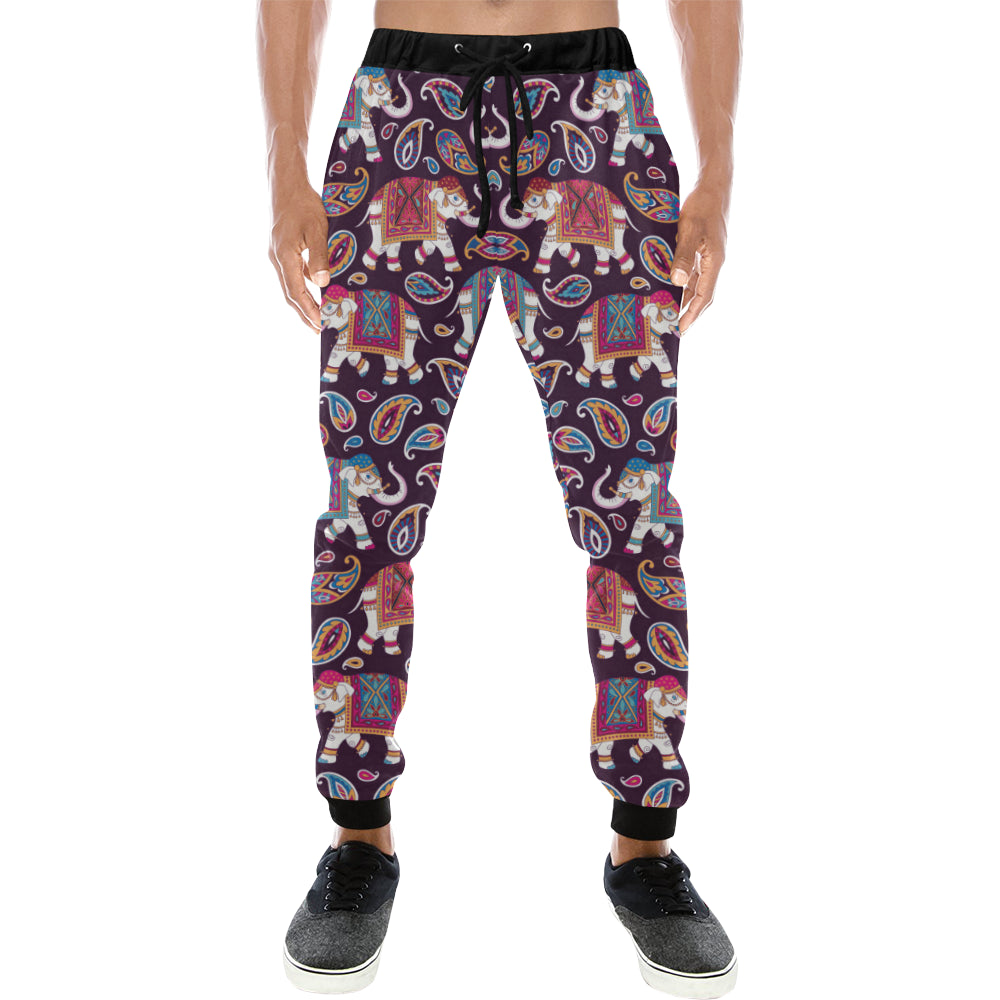 Elephant indian style ornament pattern Unisex Casual Sweatpants
