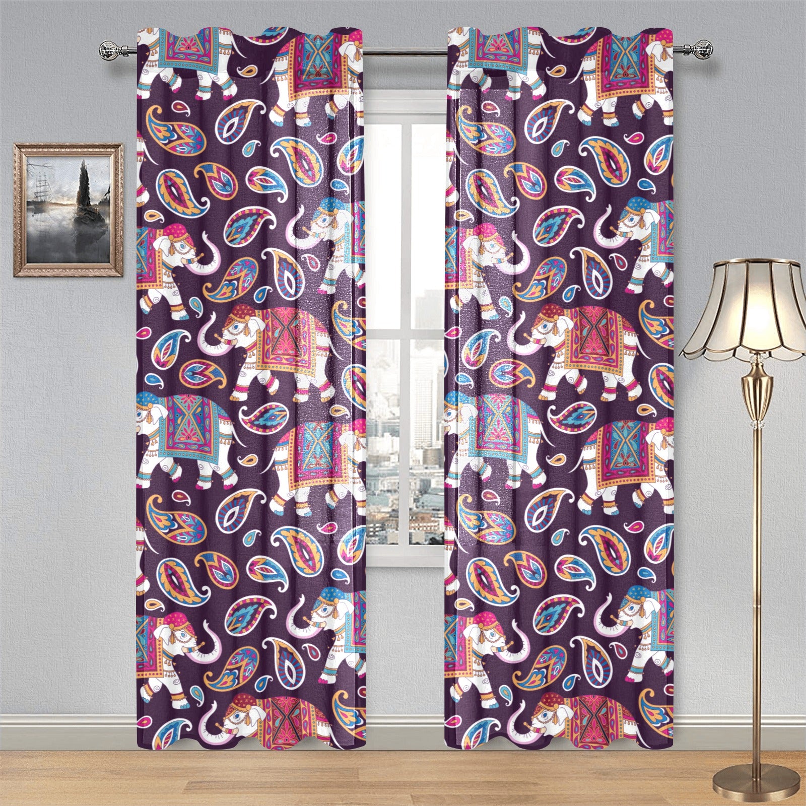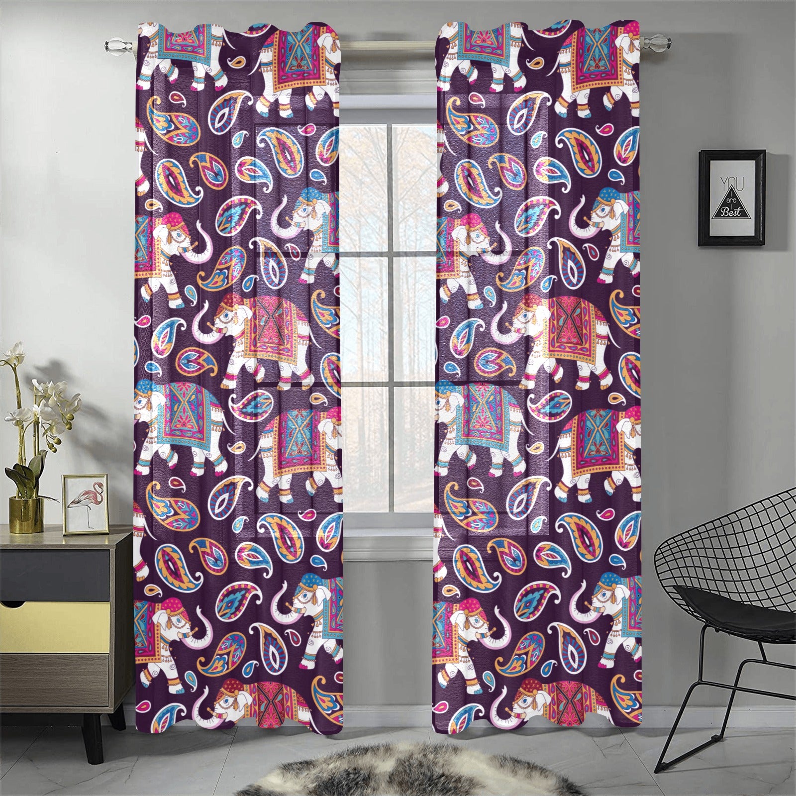 Elephant indian style ornament pattern Gauze Curtain