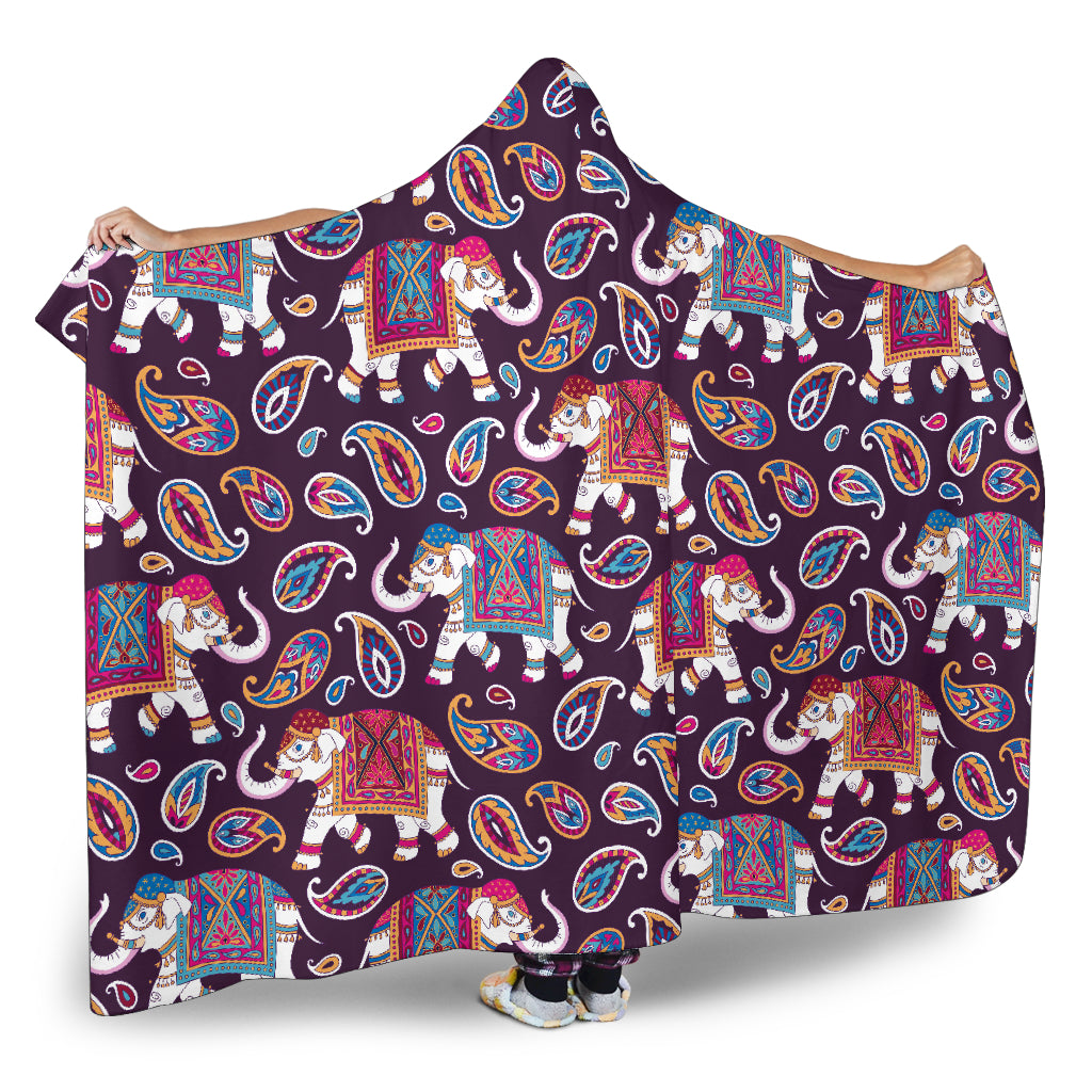 Elephant Indian Style Ornament Pattern Hooded Blanket