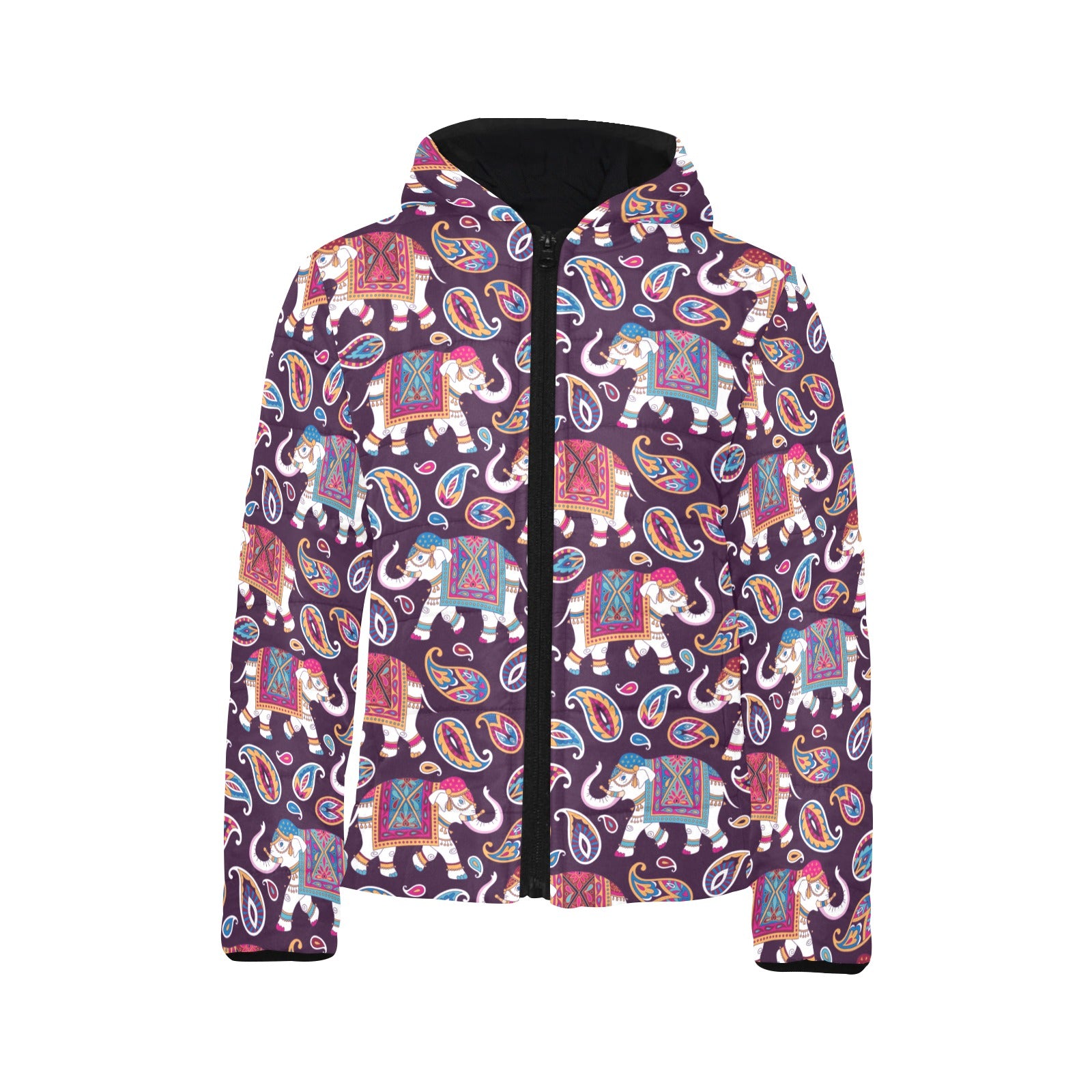 Elephant indian style ornament pattern Kids' Boys' Girls' Padded Hooded Jacket