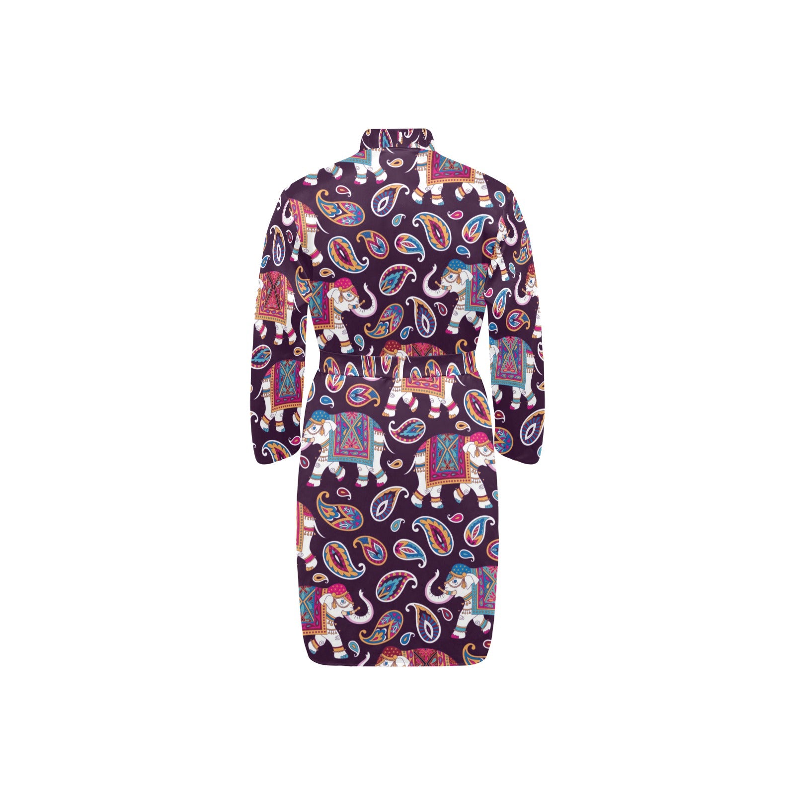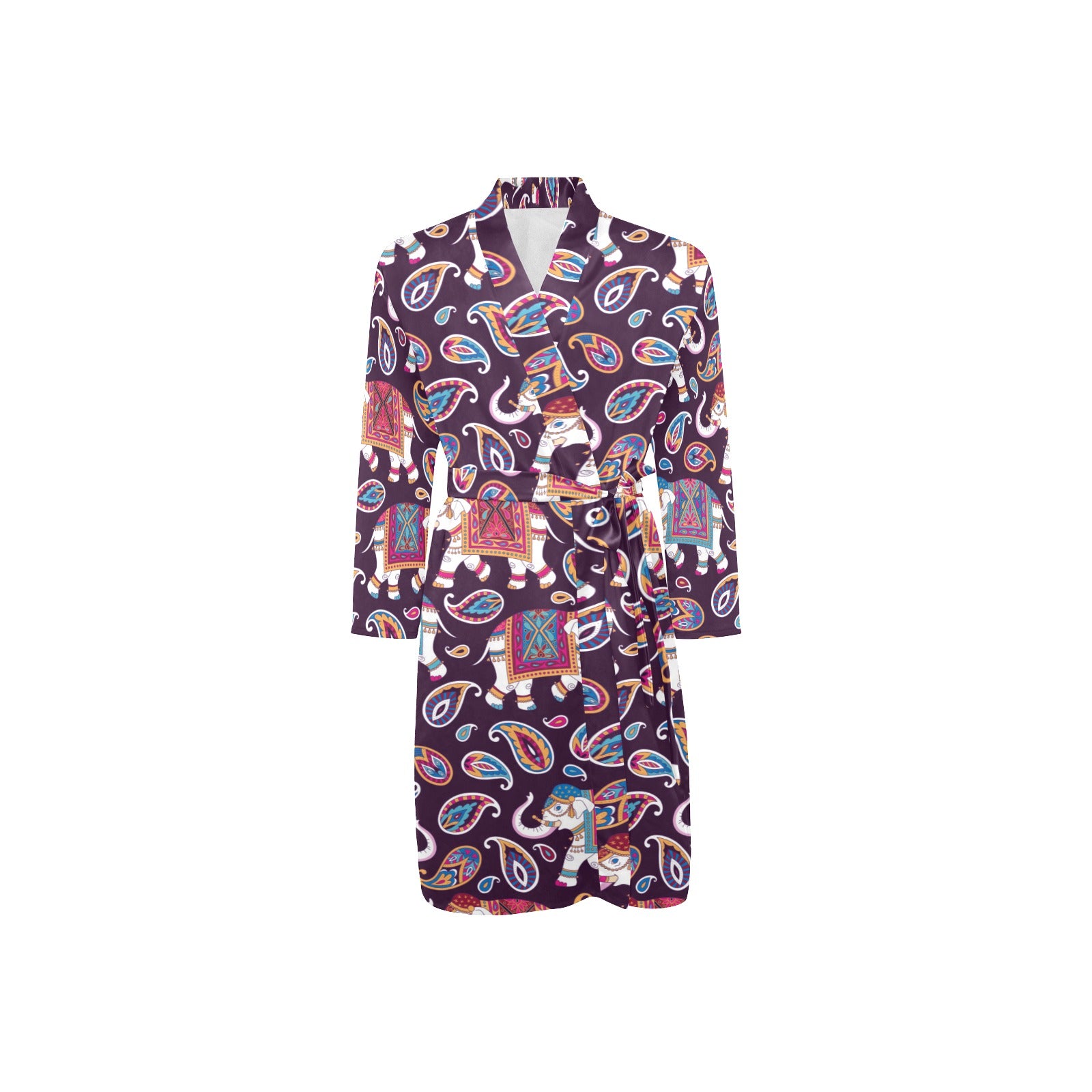Elephant indian style ornament pattern Men's Long Sleeve Belted Night Robe