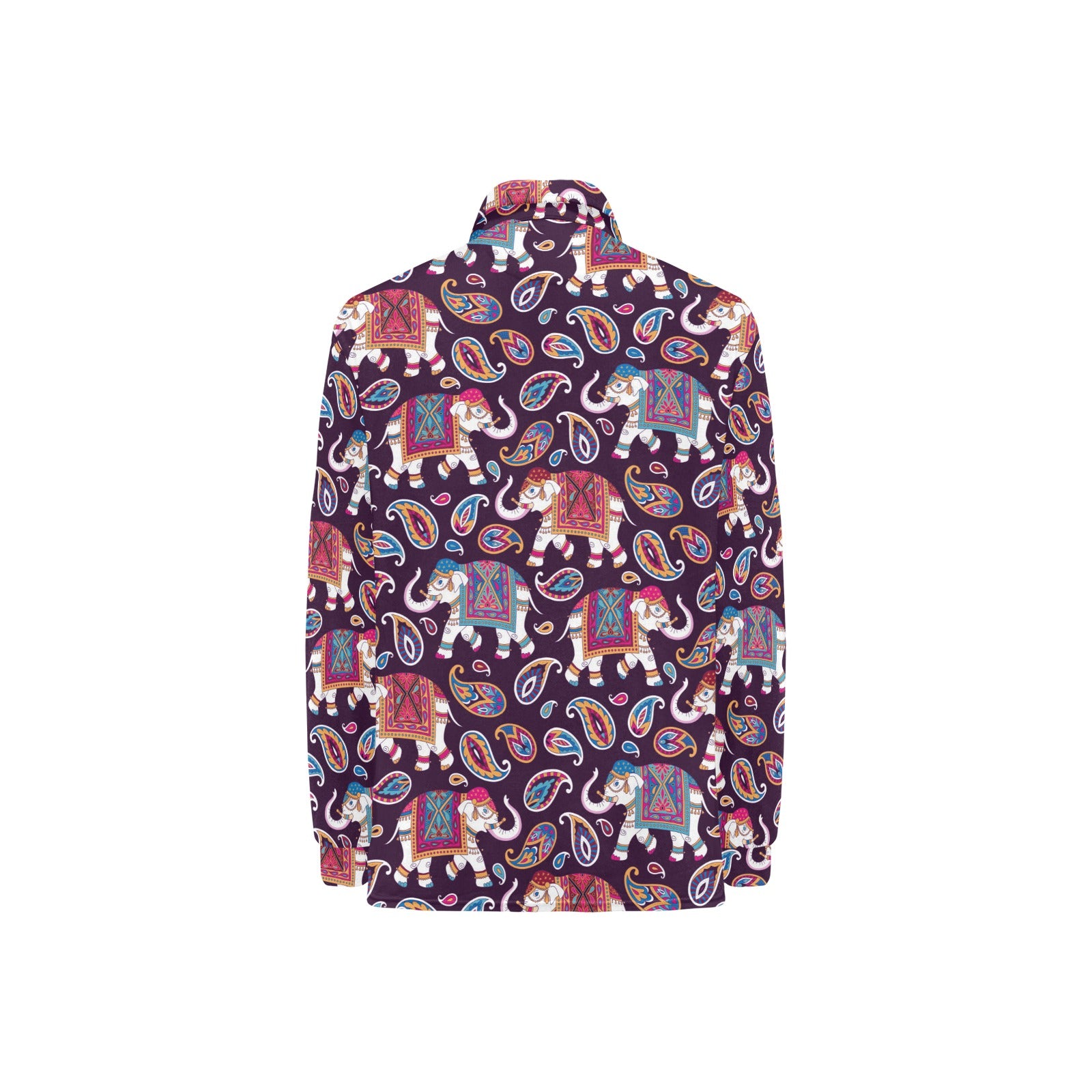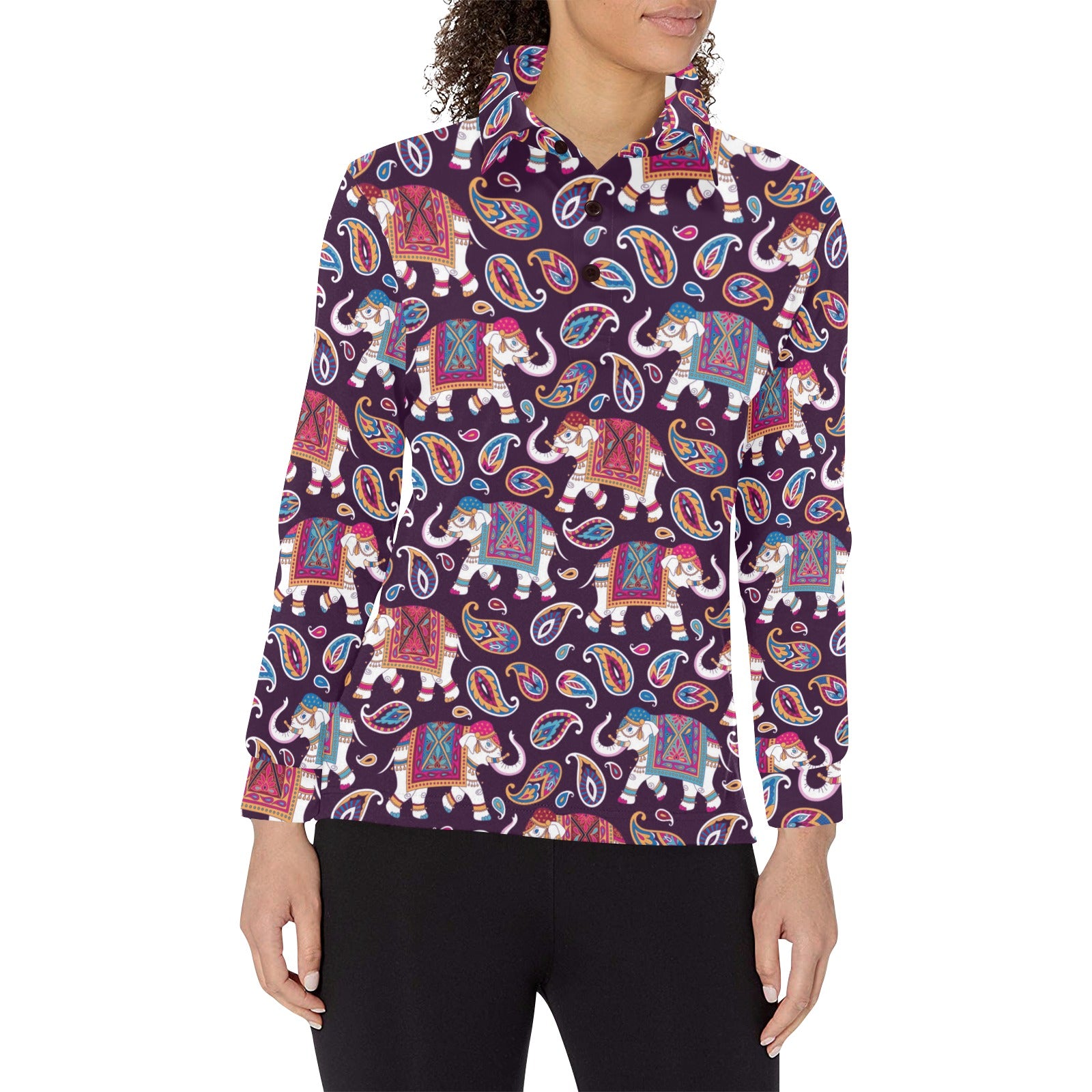 Elephant indian style ornament pattern Women's Long Sleeve Polo Shirt