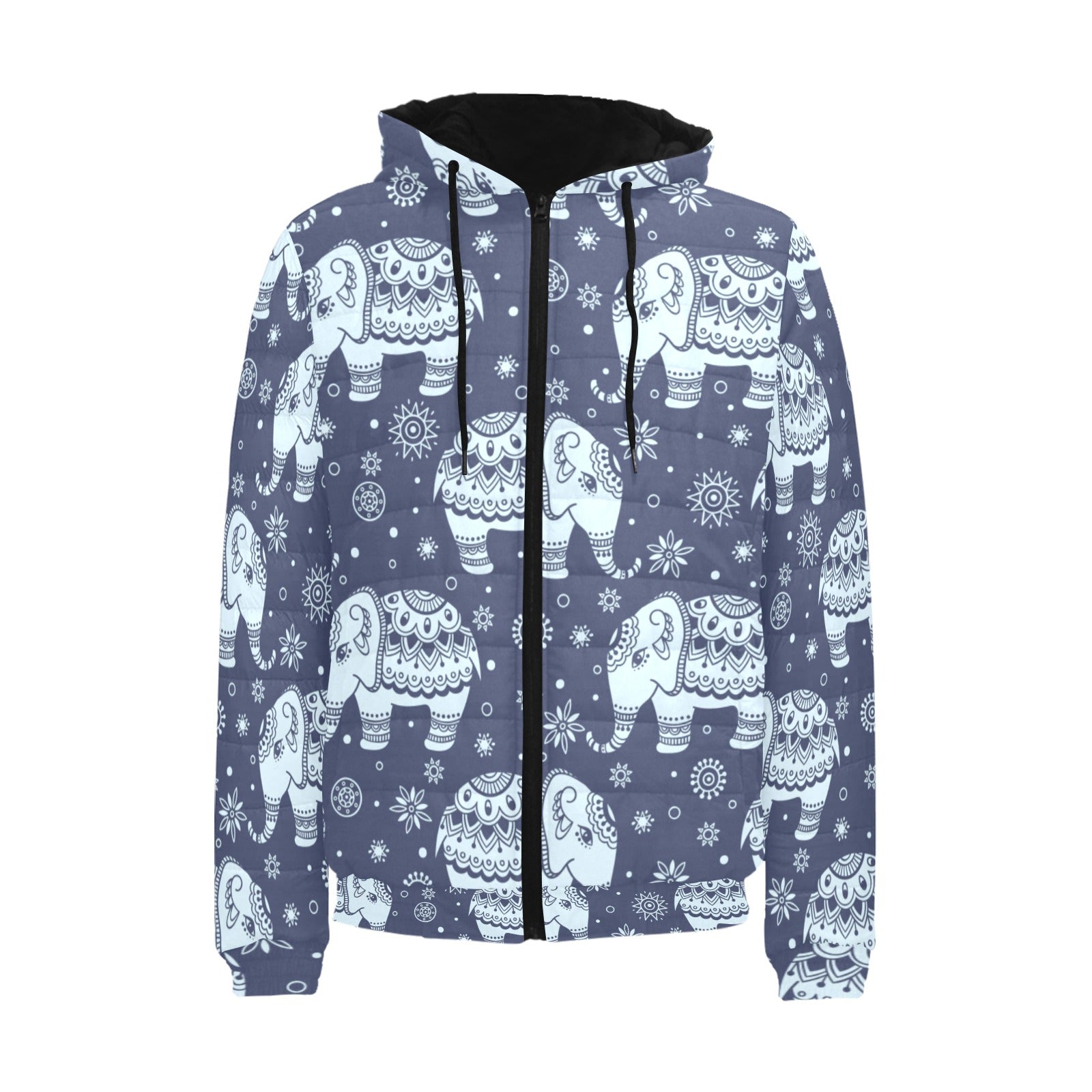 Elephant tribal design pattern Men's Padded Hooded Jacket