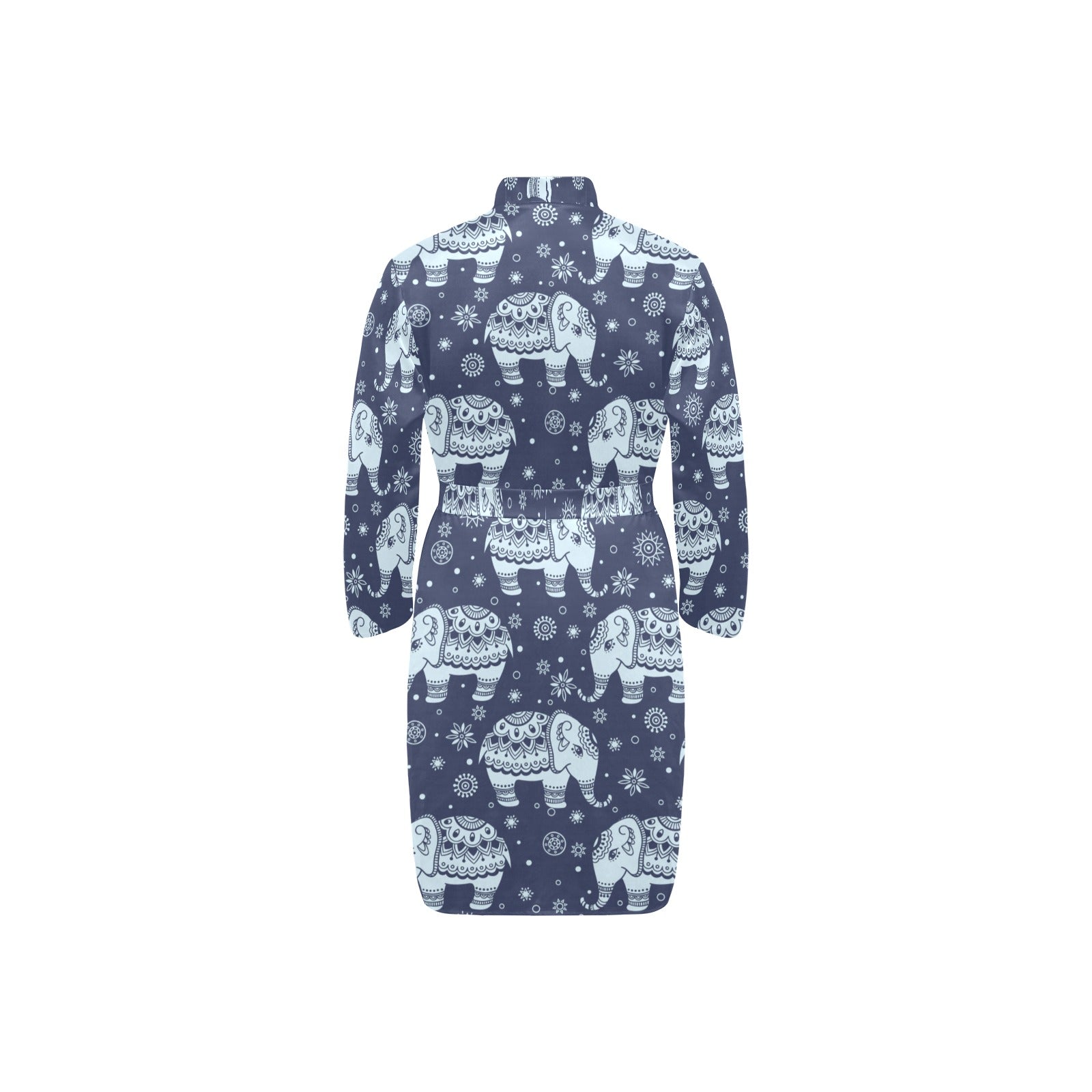 Elephant tribal design pattern Men's Long Sleeve Belted Night Robe