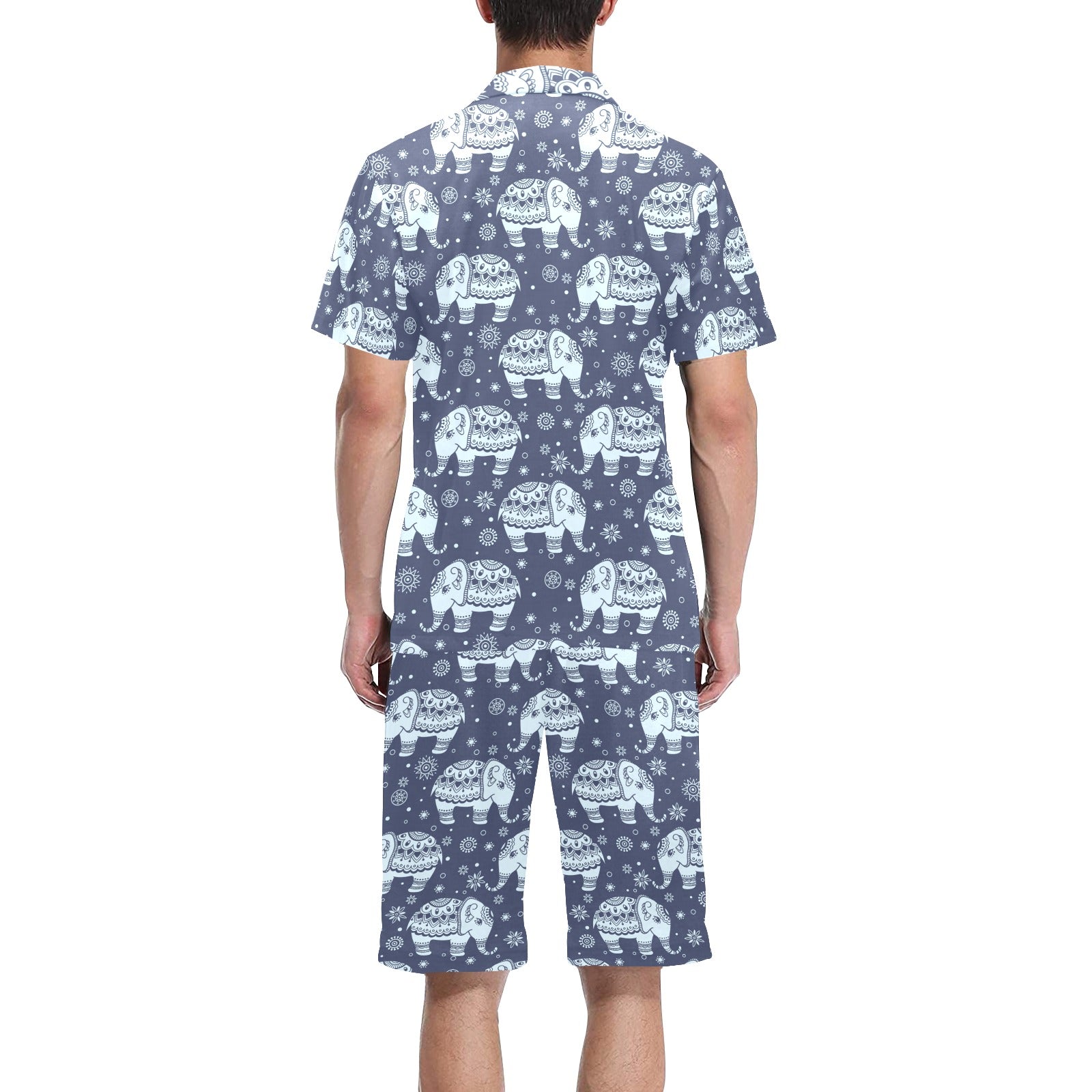 Elephant tribal design pattern Men's V-Neck Short Pajama Set