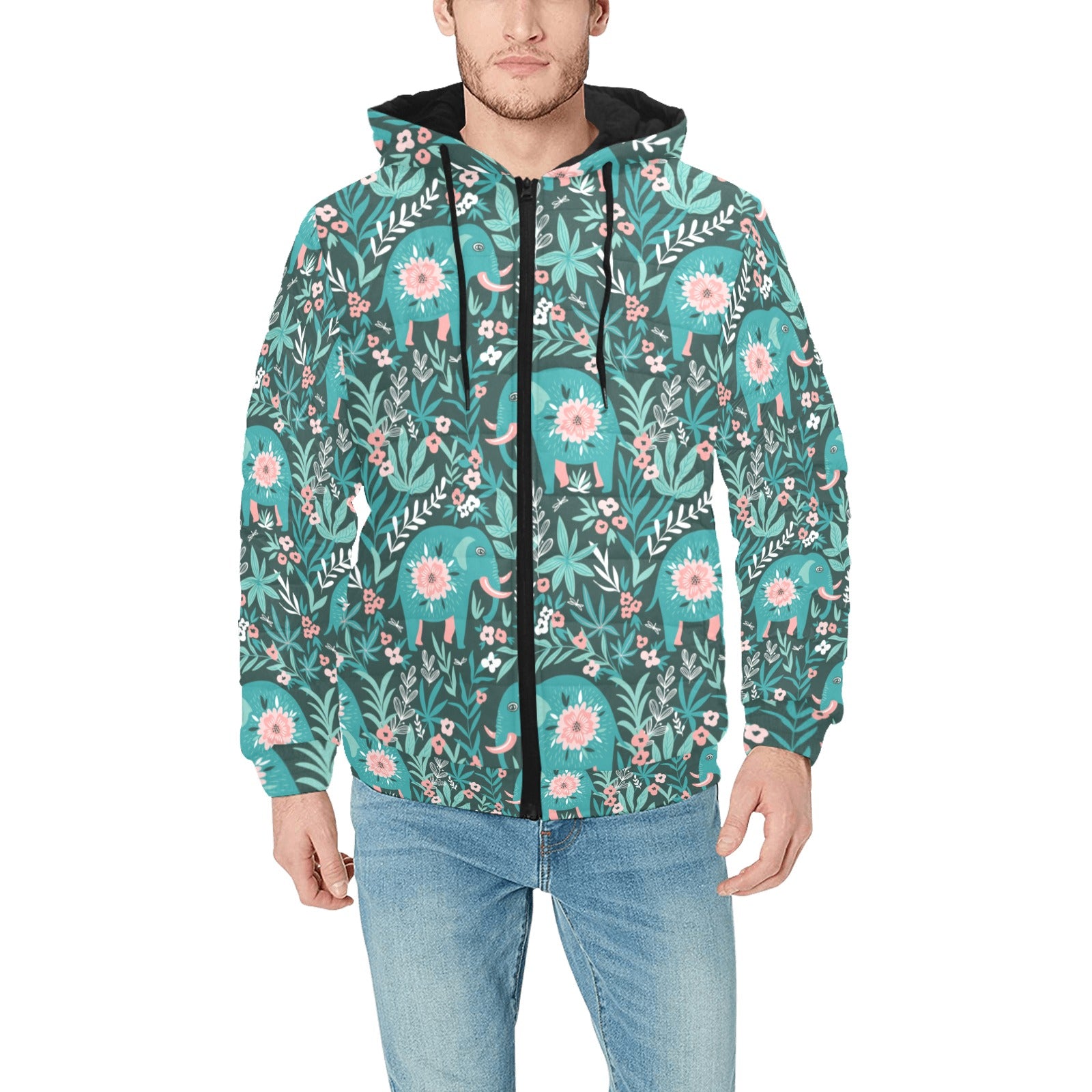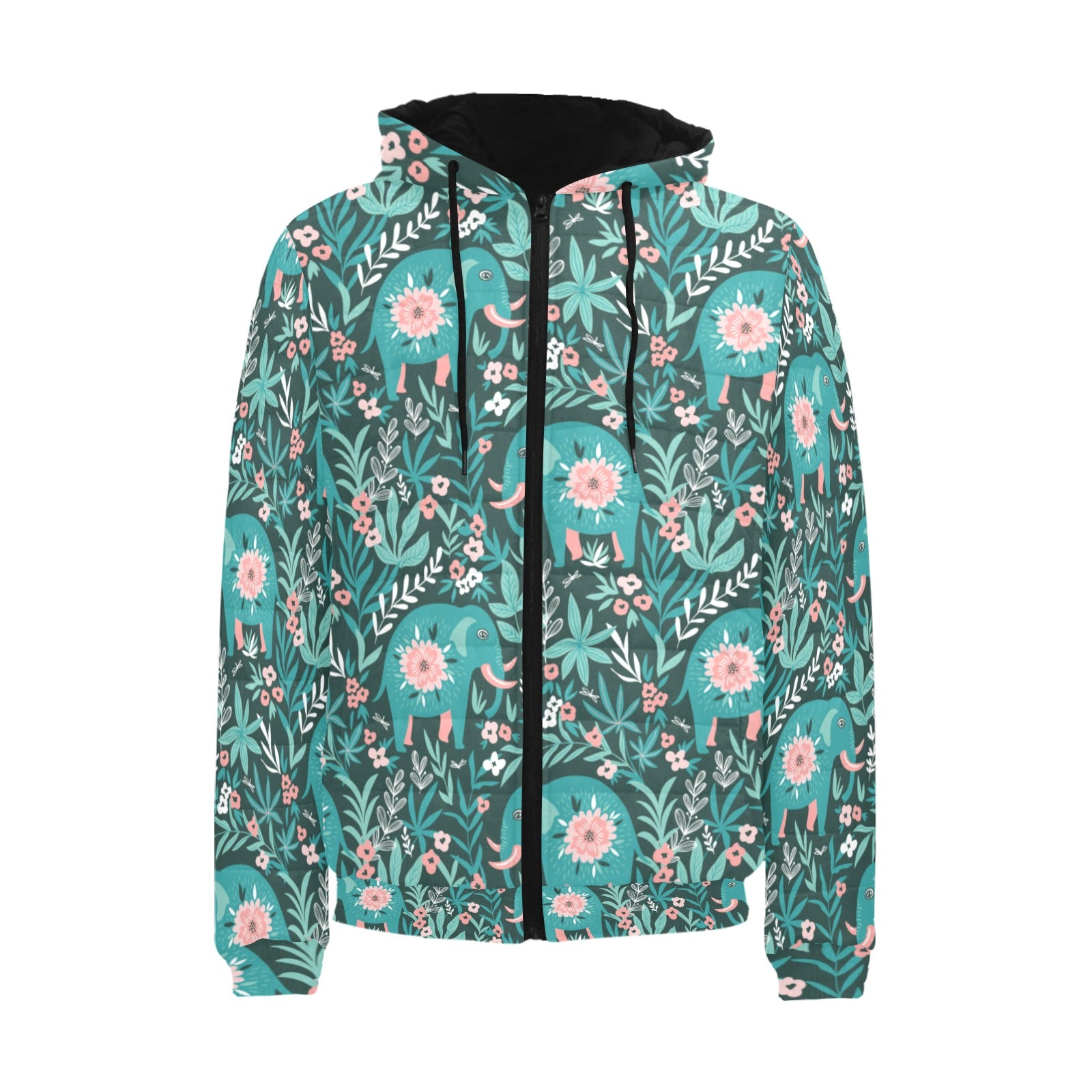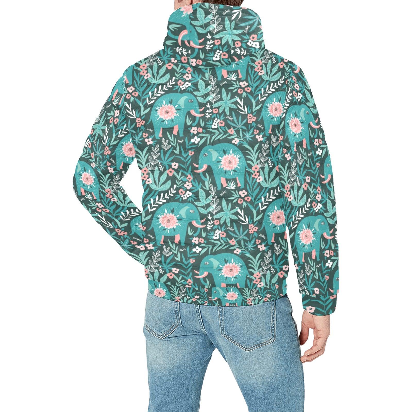 Elephants jungle pattern Men's Padded Hooded Jacket
