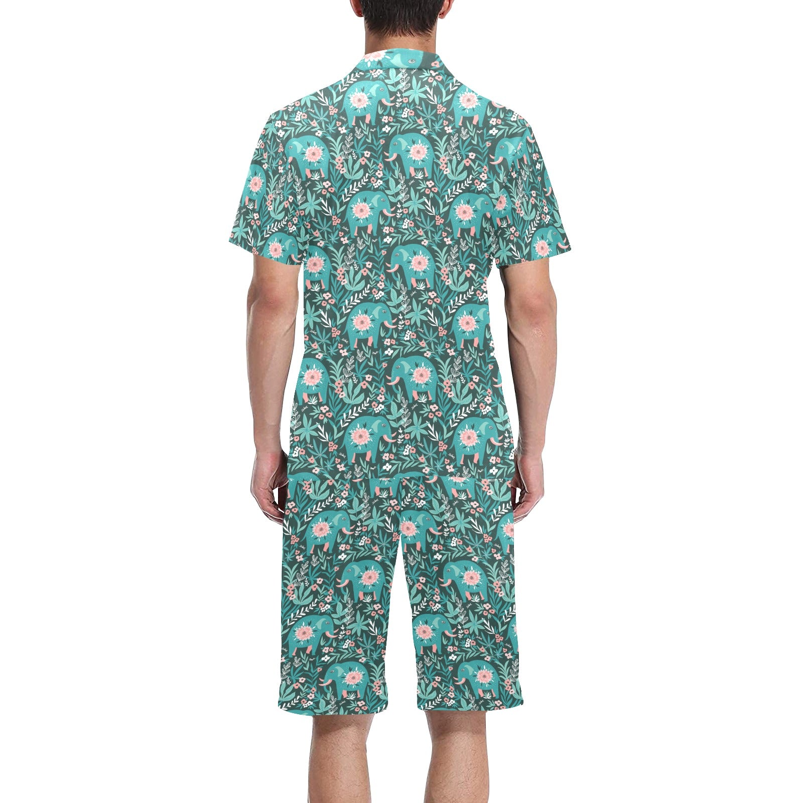 Elephants jungle pattern Men's V-Neck Short Pajama Set