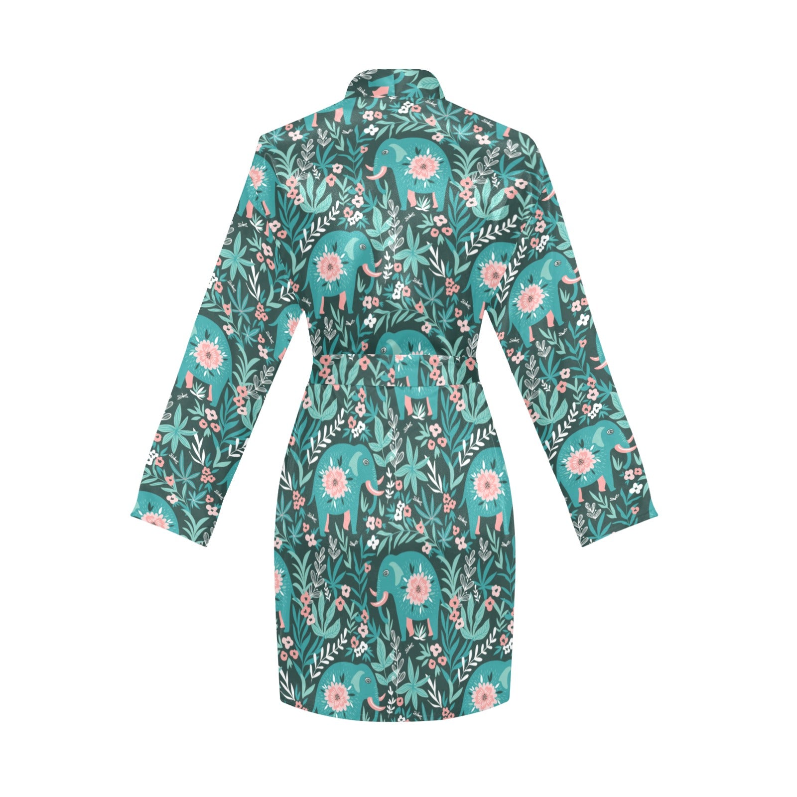 Elephants jungle pattern Women's Long Sleeve Belted Night Robe