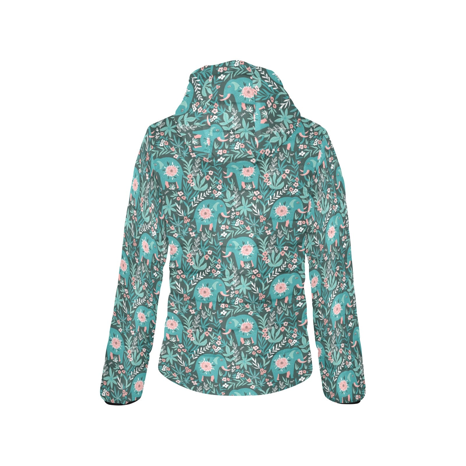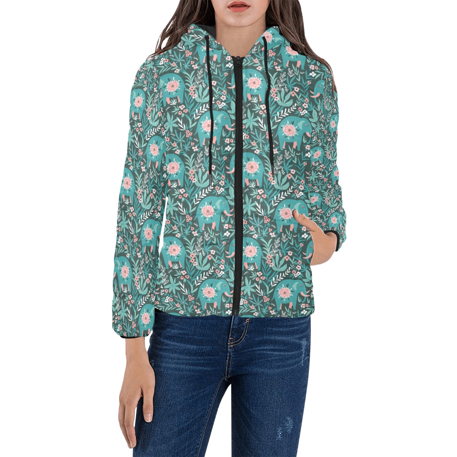 Elephants jungle pattern Women's Padded Hooded Jacket