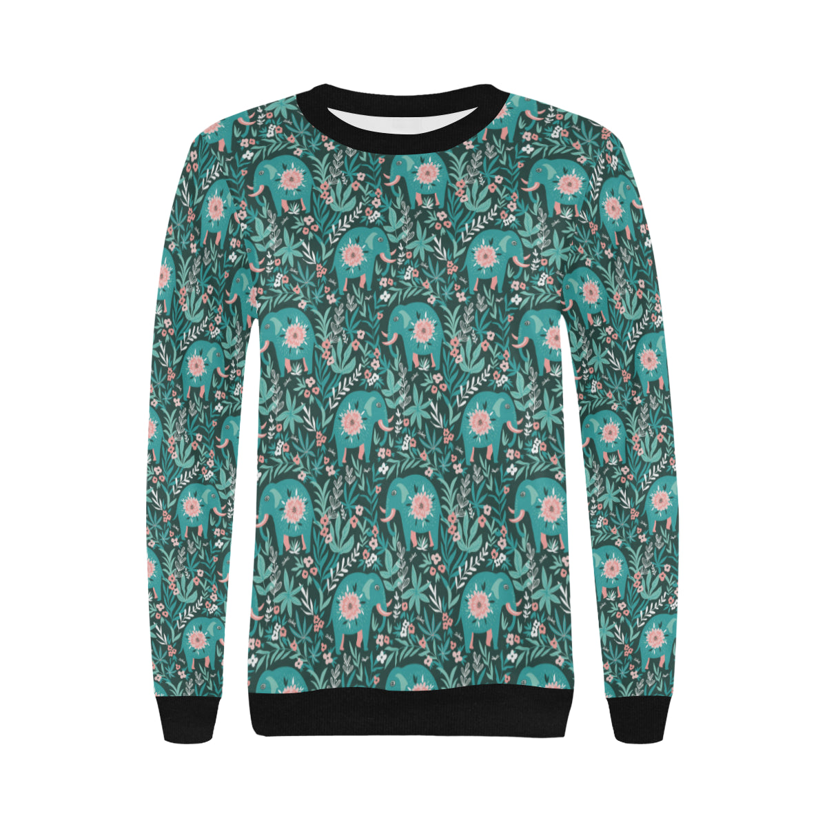 Elephants jungle pattern Women's Crew Neck Sweatshirt is a uniqued design and limited item. It made to order, hand printed, and sewn with love in our factory.