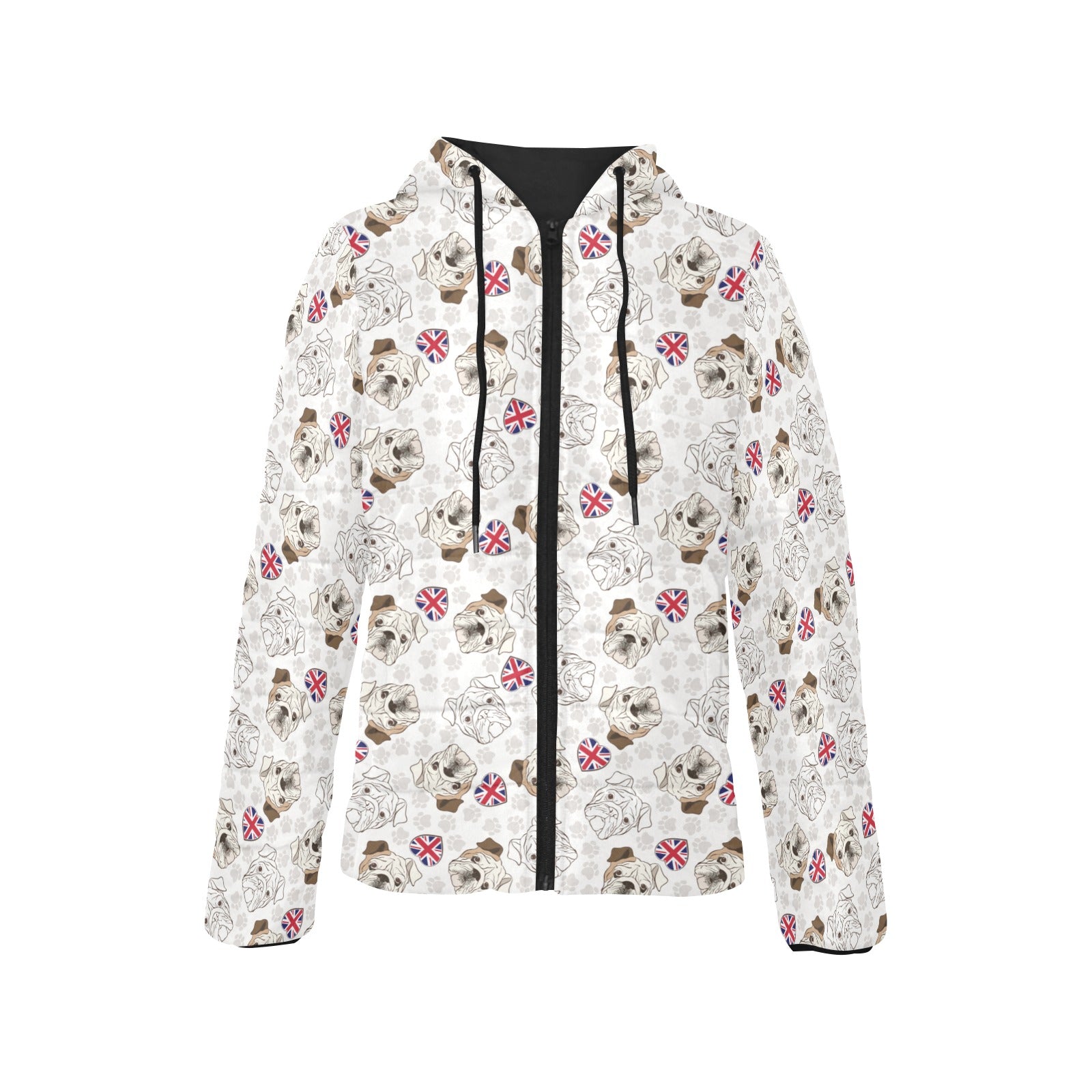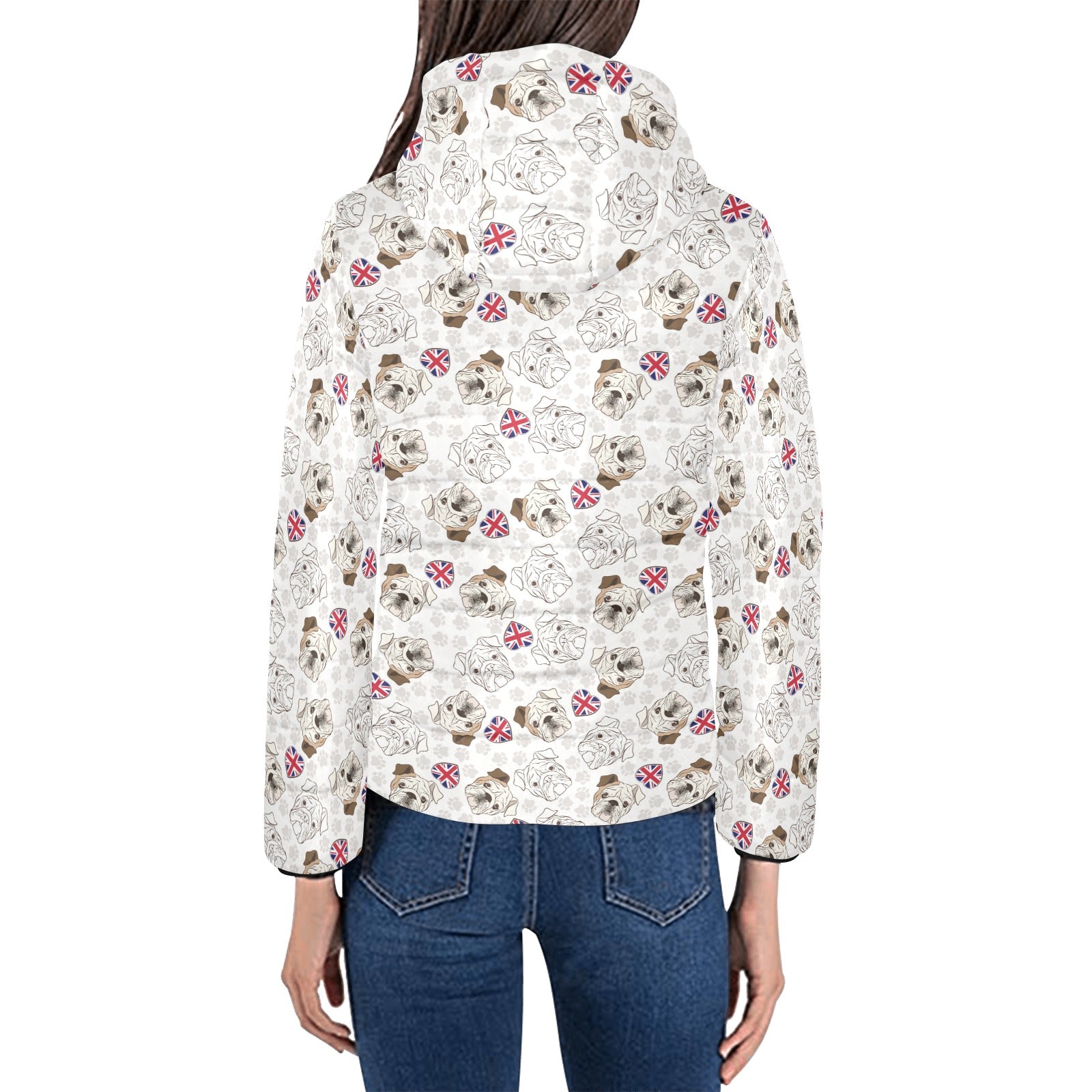 English Bulldog Pattern Print Design 01 Women's Padded Hooded Jacket